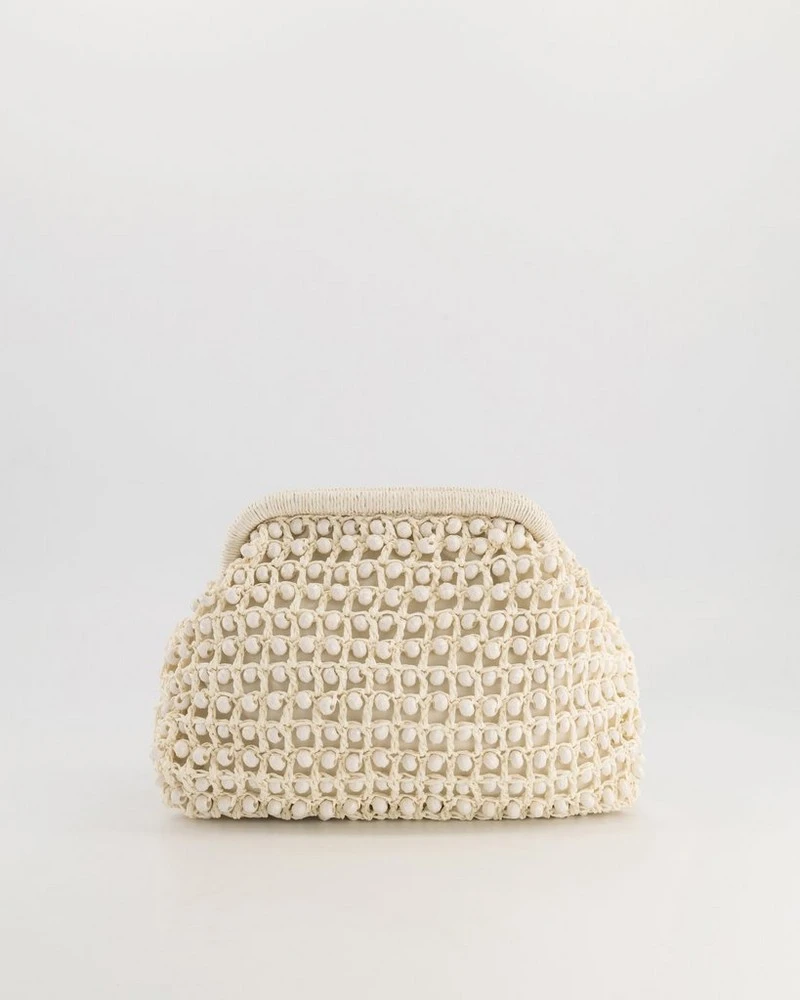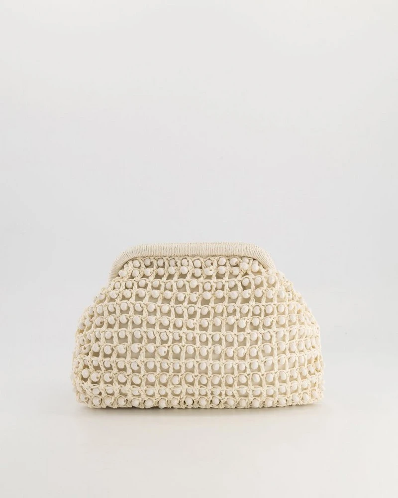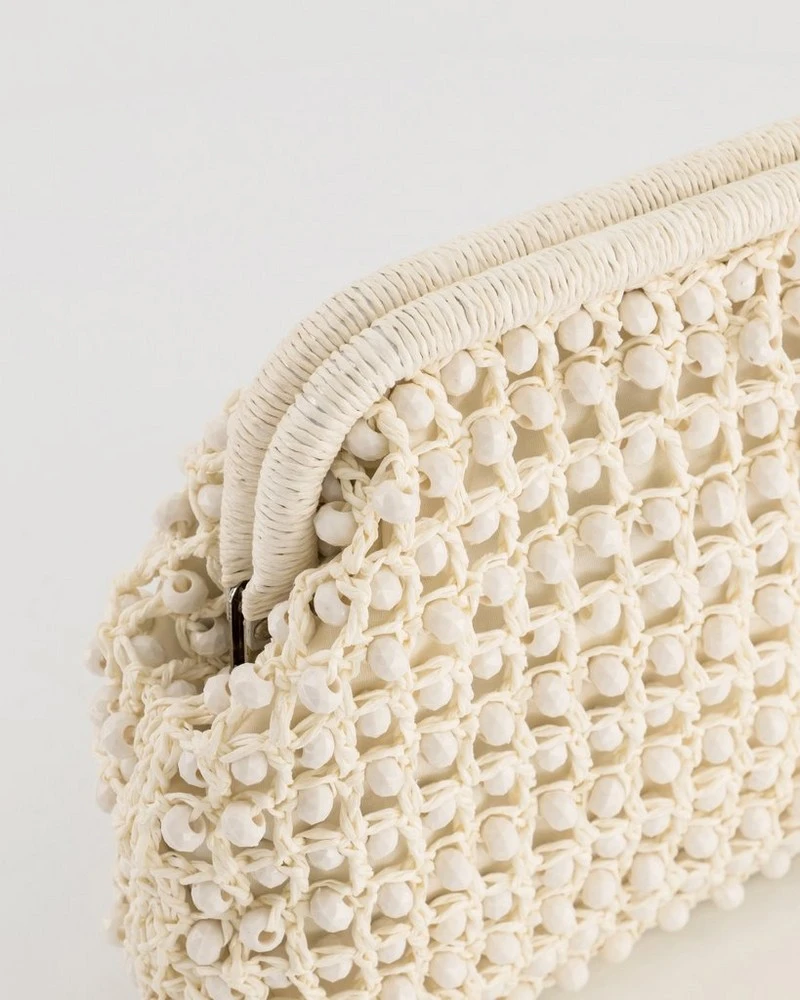 Elevate your evening ensemble with the Addison Raffia and Beaded Clutch Bag.