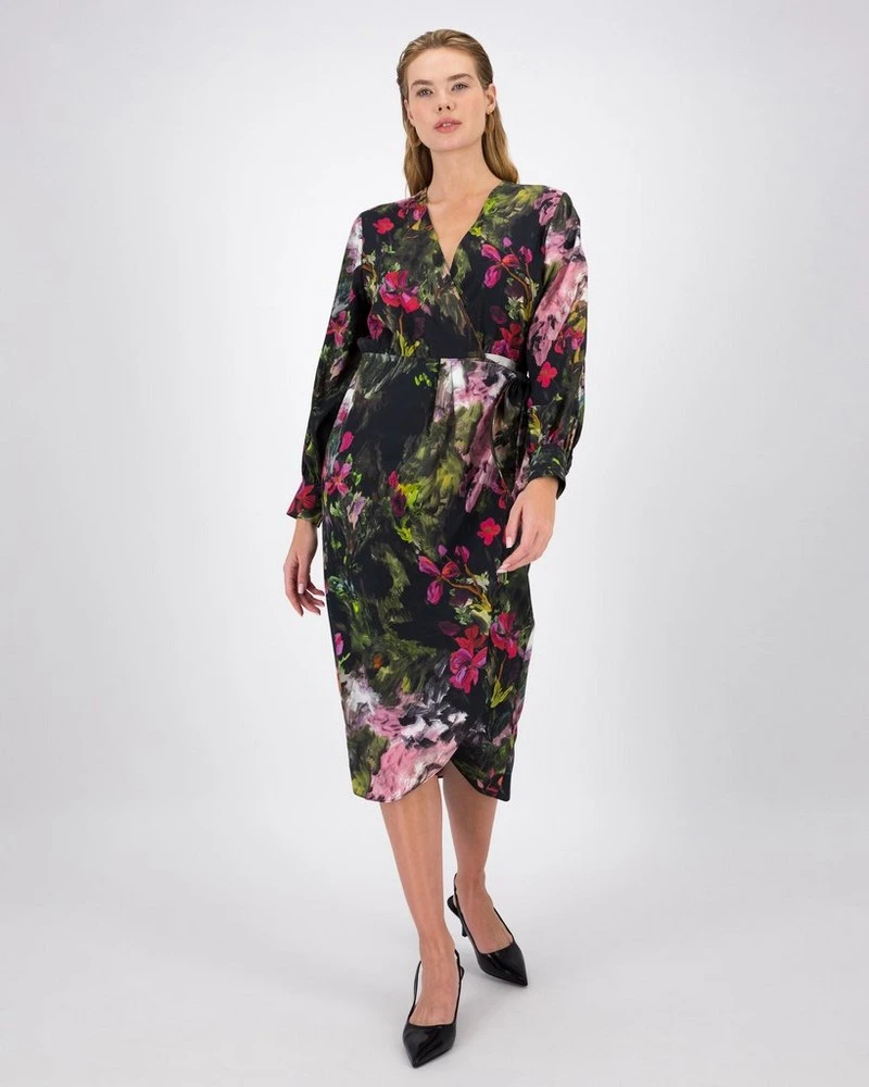 Beautiful tones and detailed design make the Adiel Printed Wrap Dress the belle of the ball. The lyocell fabric is soft on the skin, and the flattering wrap detail creates a feminine piece with stunning hues that can be dressed up or down.