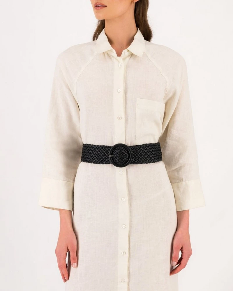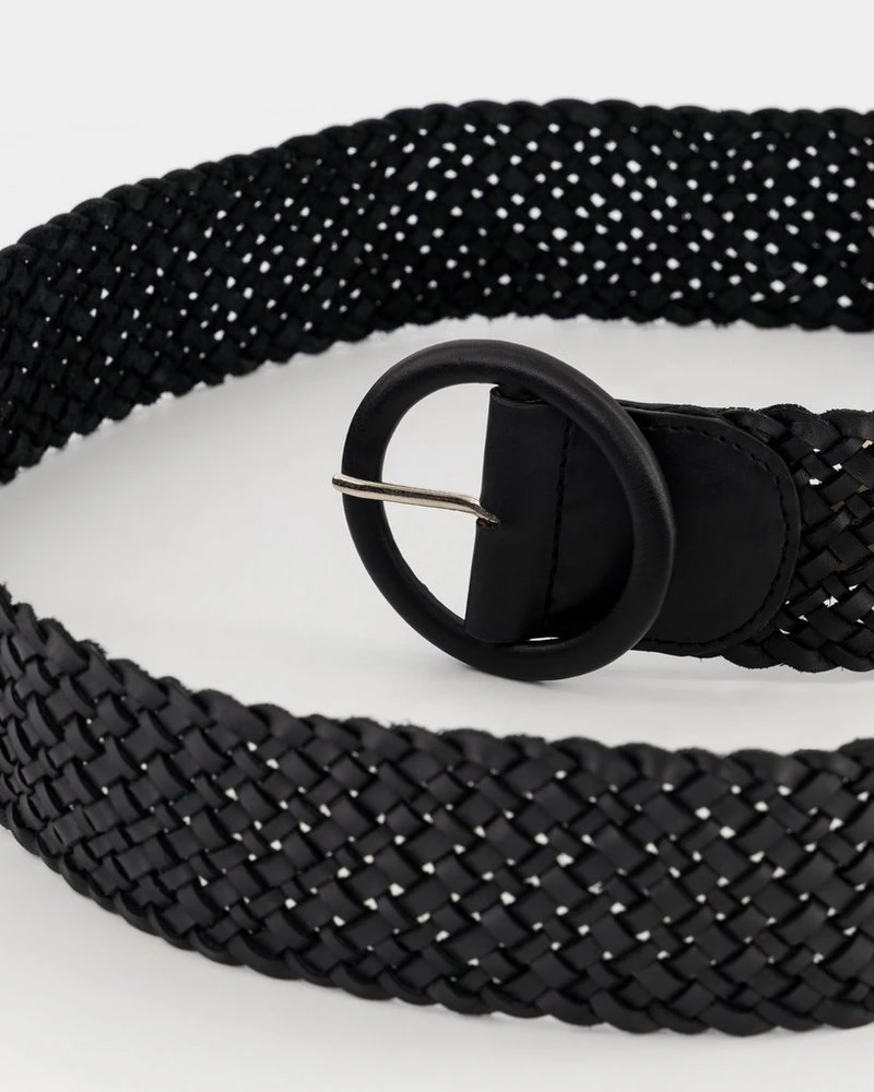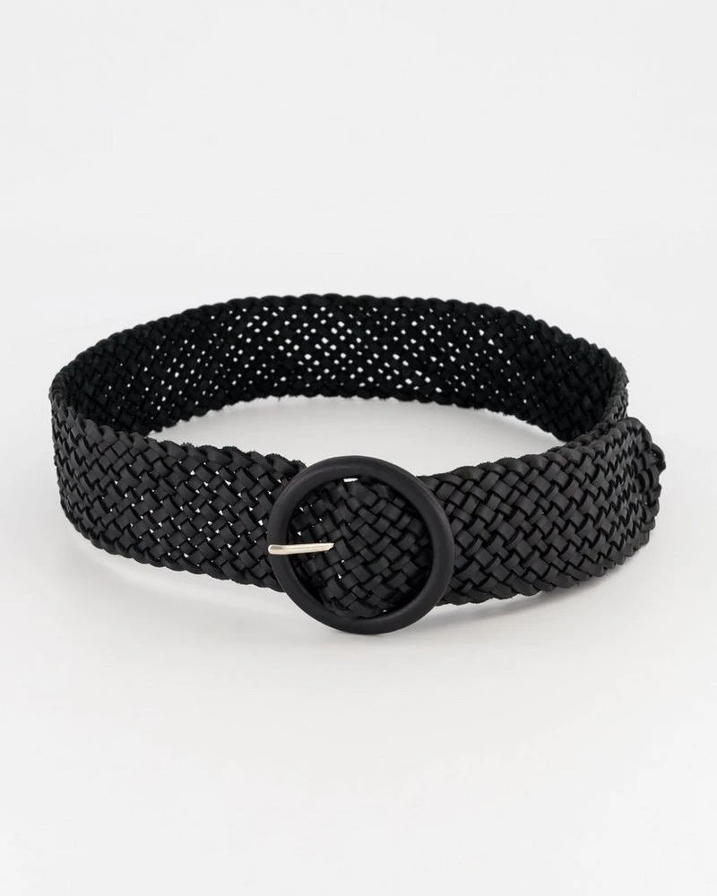 Complete your beachy chic look with the Adison Woven Leather Belt. The woven design features a round woven textured buckle.