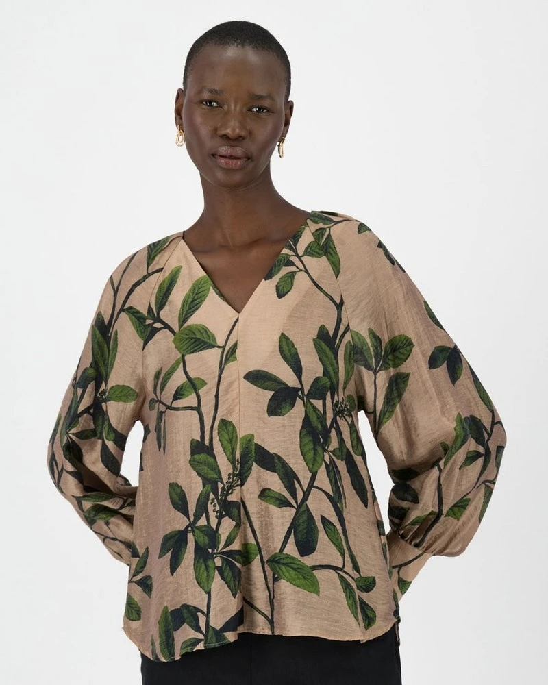 The Agni Printed Popover is a chic addition to your wardrobe. This locally made piece is made from a semi-sheer tencel blend and features a beautiful botanical print throughout.Â