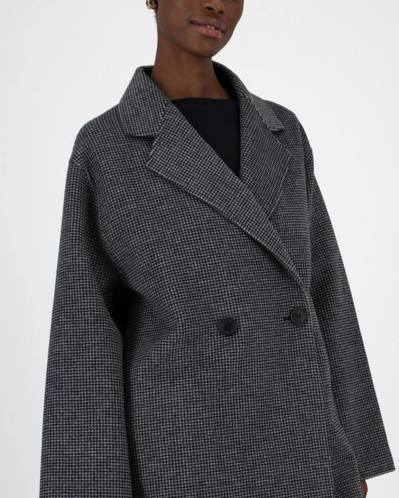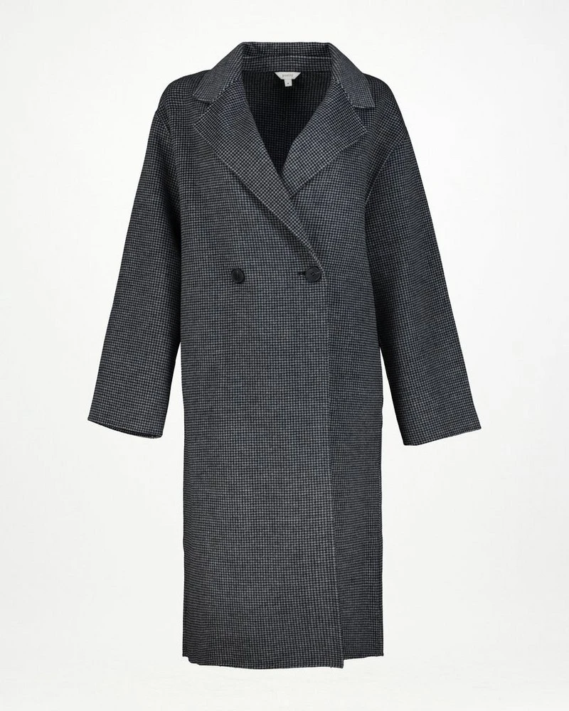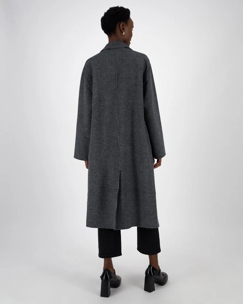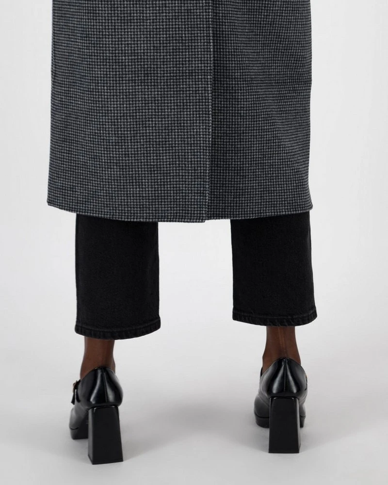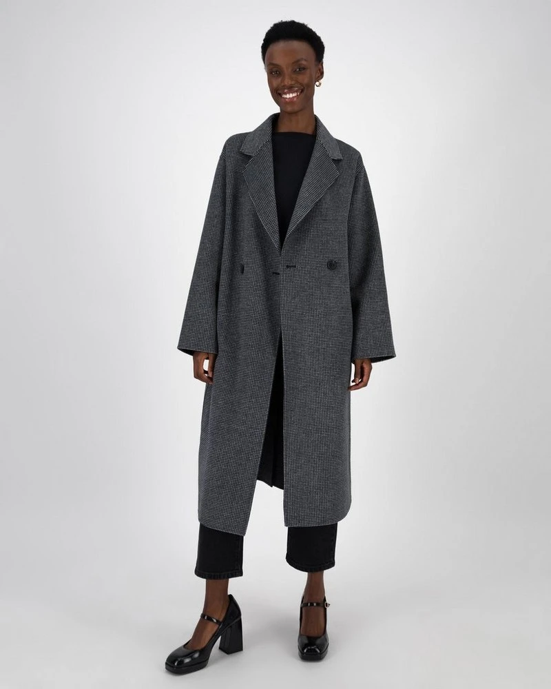 The Aila Houndstooth Wool Coat features a collared neckline, button closure and has a longer length. Made from a wool blend, this coat is warm, durable and will keep you cosy. This coat will be your go-to cover-up for cold days and is best paired with your favourite scarf, boots and knit.
