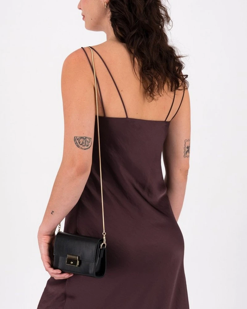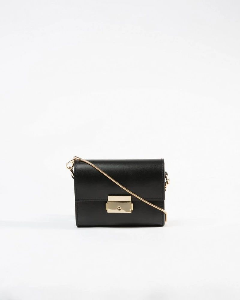 Sophisticated and stylish, the Alba Crossbody Bag is small but packs a punch. Made from leather, this piece features a gold chain strap, and a stunning gold buckle closure that adds a touch of elegance to the bag.Â