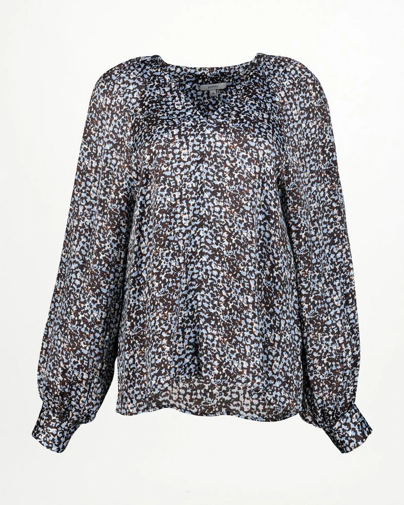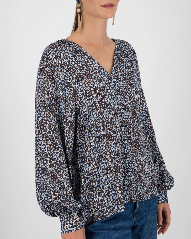 Soft and flowy, the Amari Printed Blouse is a beautiful addition to your winter wardrobe. The soft viscose blend fabric is comfortable to wear and has a beautiful drape that is flattering to any figure. It also has a subtle balloon sleeve detail, that adds soft romance to the piece.Â