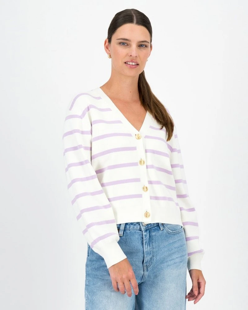 Comfort meets chic with the Anais Stripe Cardigan. Made from ultra-soft cotton, the cardigan features a feminine stripe throughout and the classic silhouette makes it the perfect transitional piece for the season.