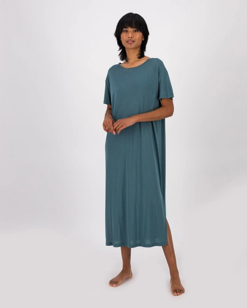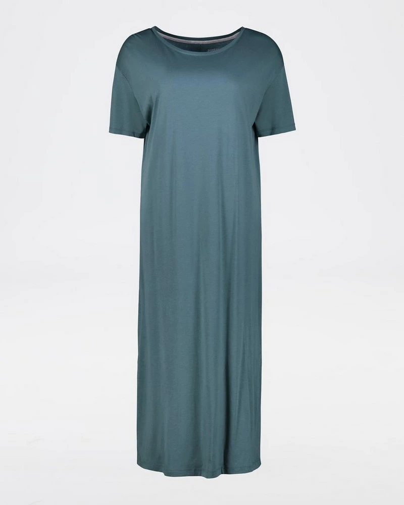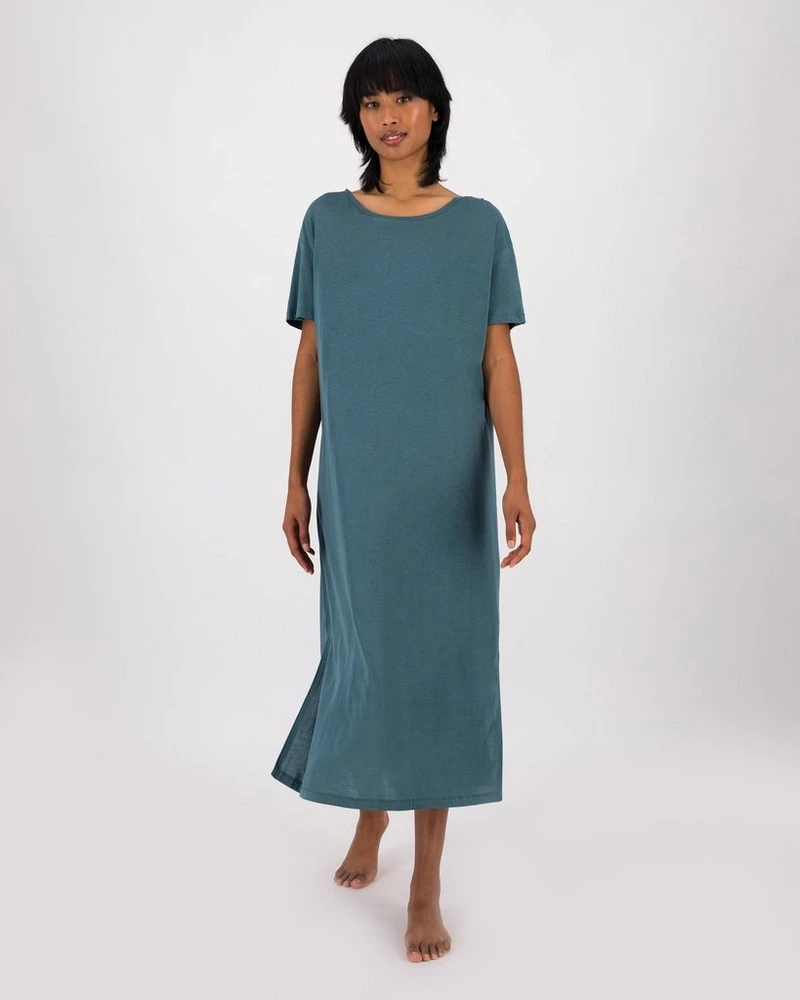 Enjoy your beauty rest in style with the comfortable, soft and subtly printed Annabella Sleep Dress. Made from a lightweight sustainably-sourced cotton blend, this comfy nightie features a maxi-length design with short sleeves and slit detail at the hem.