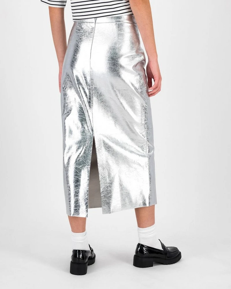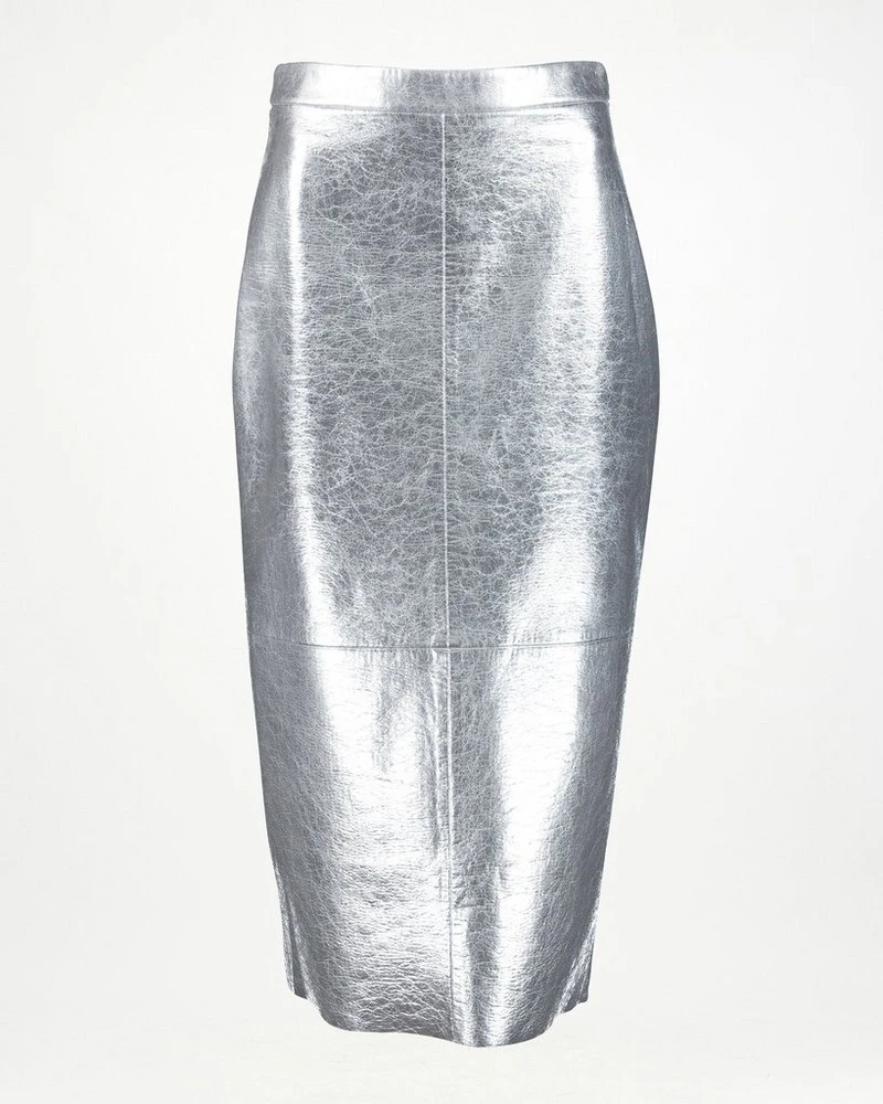 Bring on the shine with the Autumn Metallic Skirt. The classic pencil skirt silhouette is elevated by the stunning eye-catching fabric! Pair with a bold pop of colour and knee-length boots for a fun winter-ready look.Â