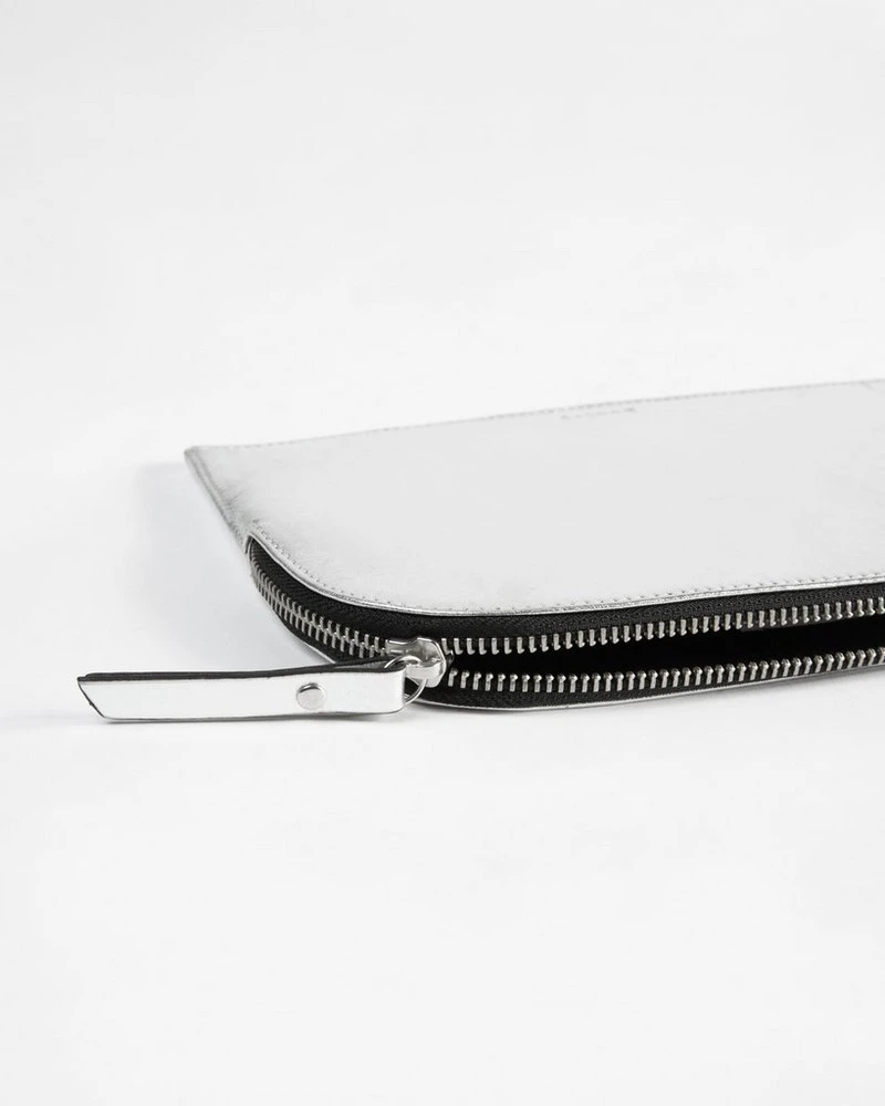 Carry all your essentials in the Bea Metallic Leather Pouch. This uniquely-shaped pouch features a zipper closure with tassel detail and is spacious enough to fit all your must-haves.
