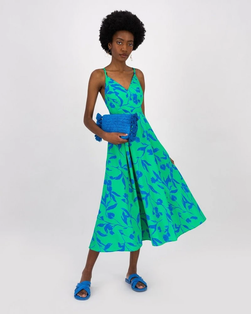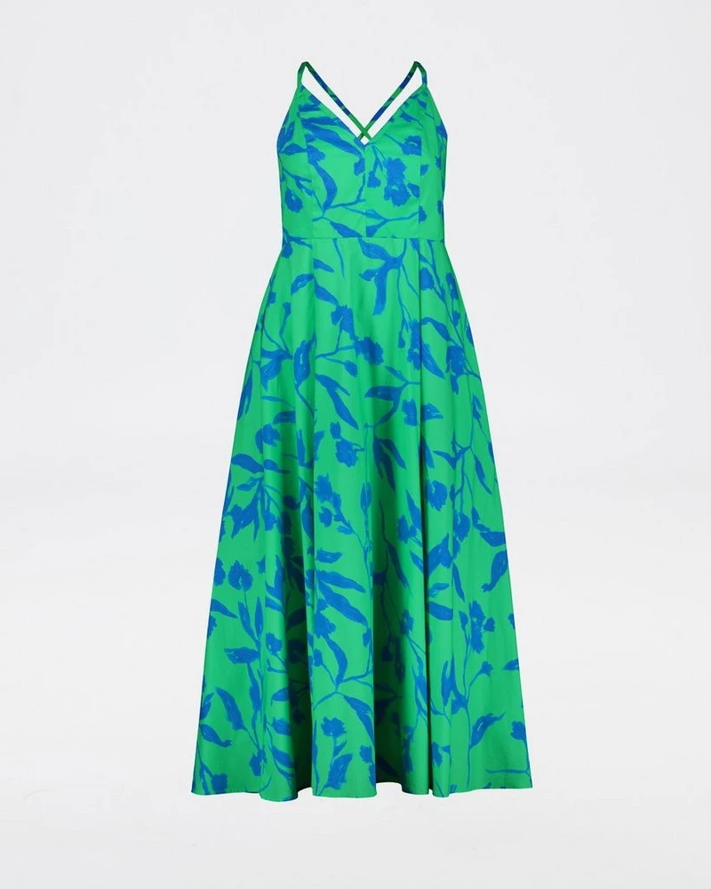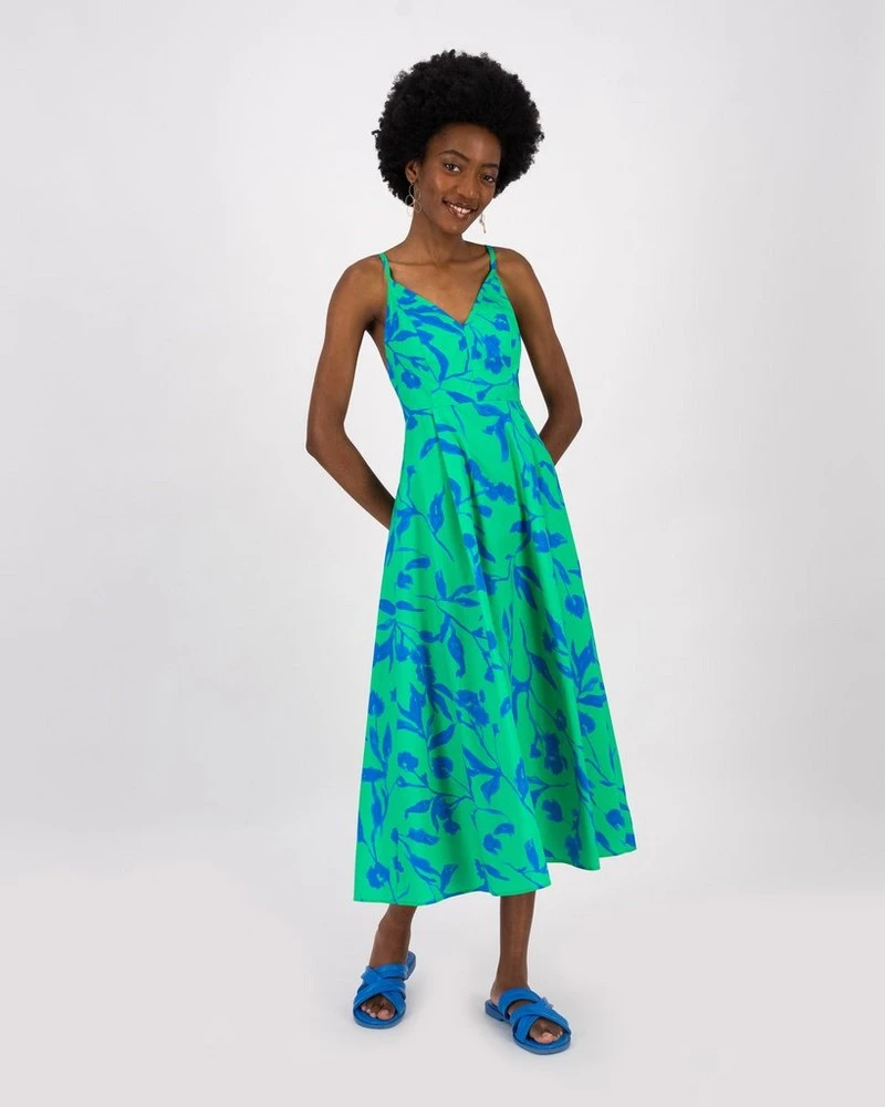 Feminine and flattering, the Belkis Printed Strappy Dress is also fun, easy-wearing and still classy – everything you want in a summer dress. Made from a lightweight sustainably-sourced cotton poplin with a beautiful two-tone floral print, the midi features a fit-and-flare silhouette with a flattering v-neckline and strappy sleeveless design.