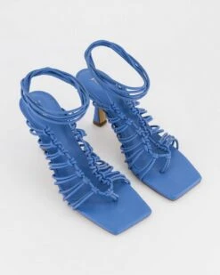 The Bella Heel is traced with leather straps to create a beautiful cage-like design before wrapping around the ankle. The square-toe sandal is set on 8cm heels and the vivid colours will elevate any outfit.Â