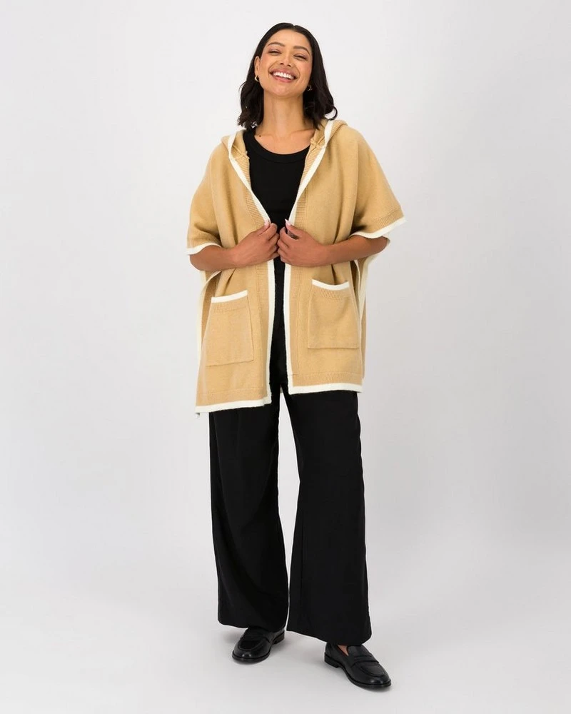 Keep the chill at bay with the Bontle Knitted Poncho. The perfect transitional layer, this piece features two large pockets and a hood, and can be layered over a long-sleeve for a cosy yet stylish outfit.Â