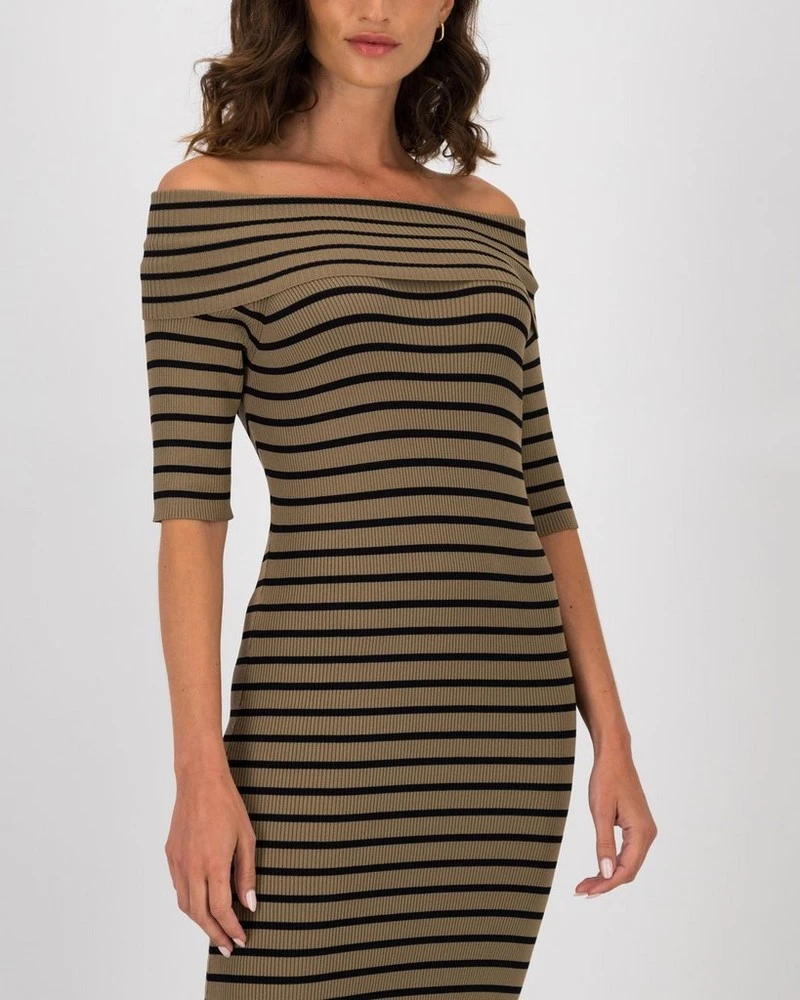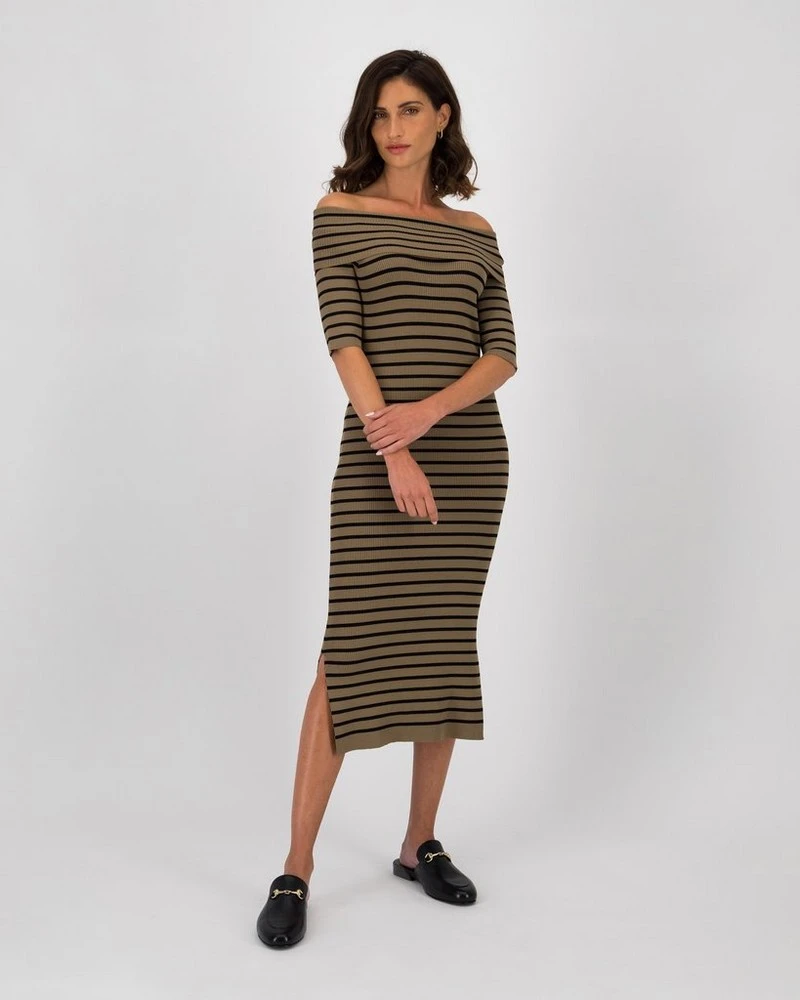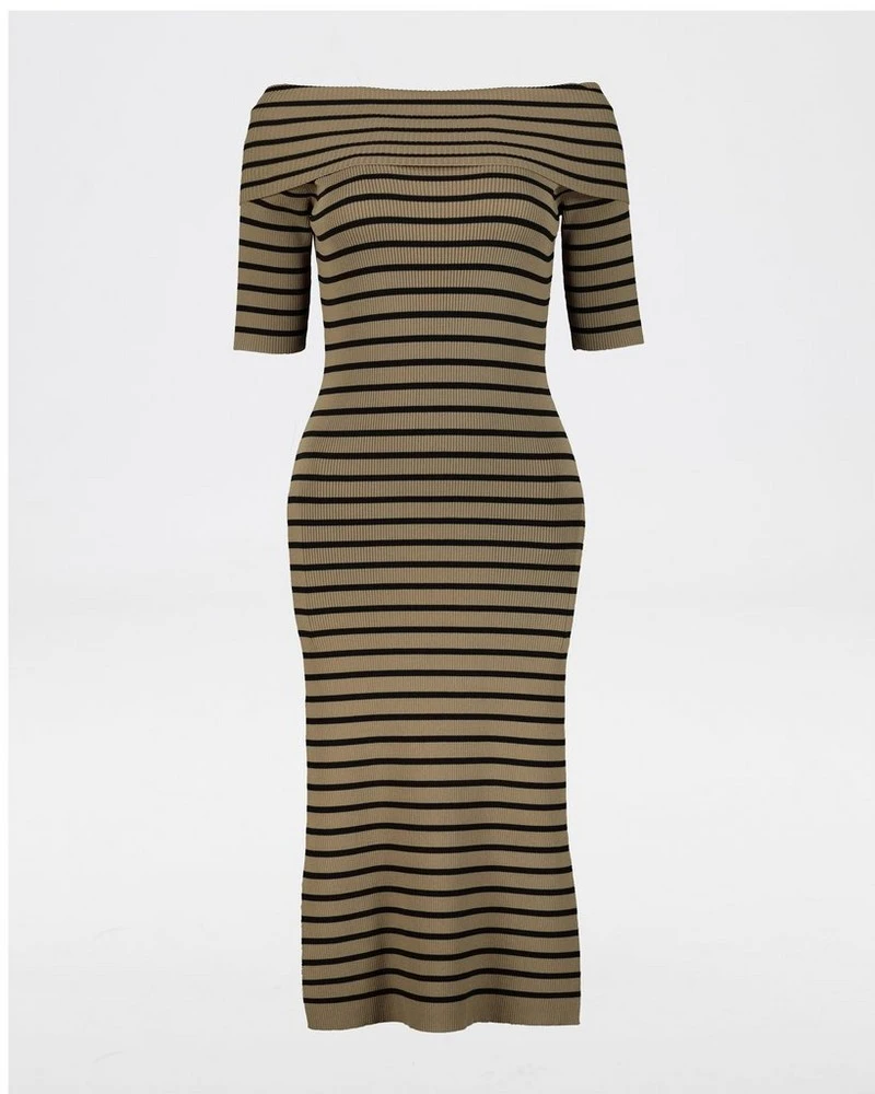 The Bryony Stripe Knit Dress is a must-have for the Poetry woman. Made from a high-quality viscose blend, this dress is fitted, accentuates your curves in a flattering way and can be worn for all occasions.Â