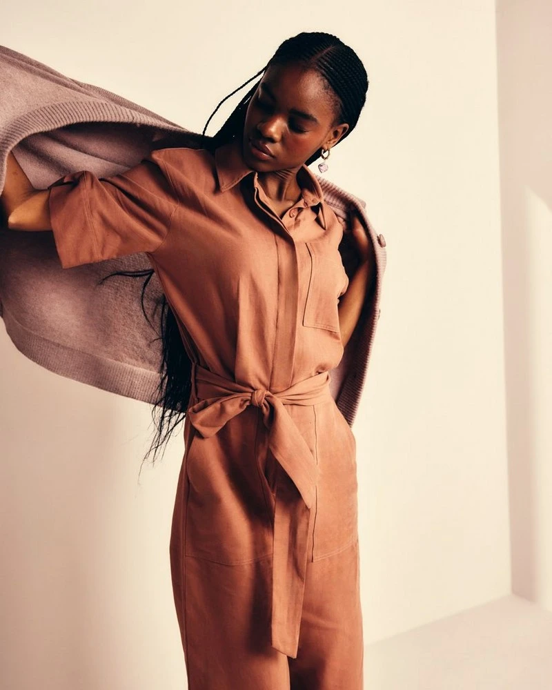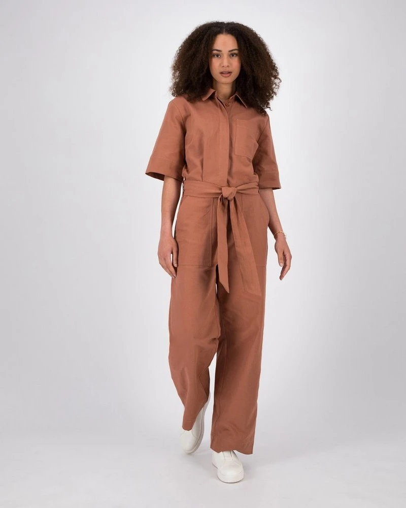 The Celeste Jumpsuit is a must-have piece to add to your wardrobe. Locally made from a luxe cotton/linen blend fabric, it features a button-close top and belt to add flattering shape to the piece. It’s a stylish trans-seasonal piece that can be worn under a fun knit or denim jacket for a chic look.