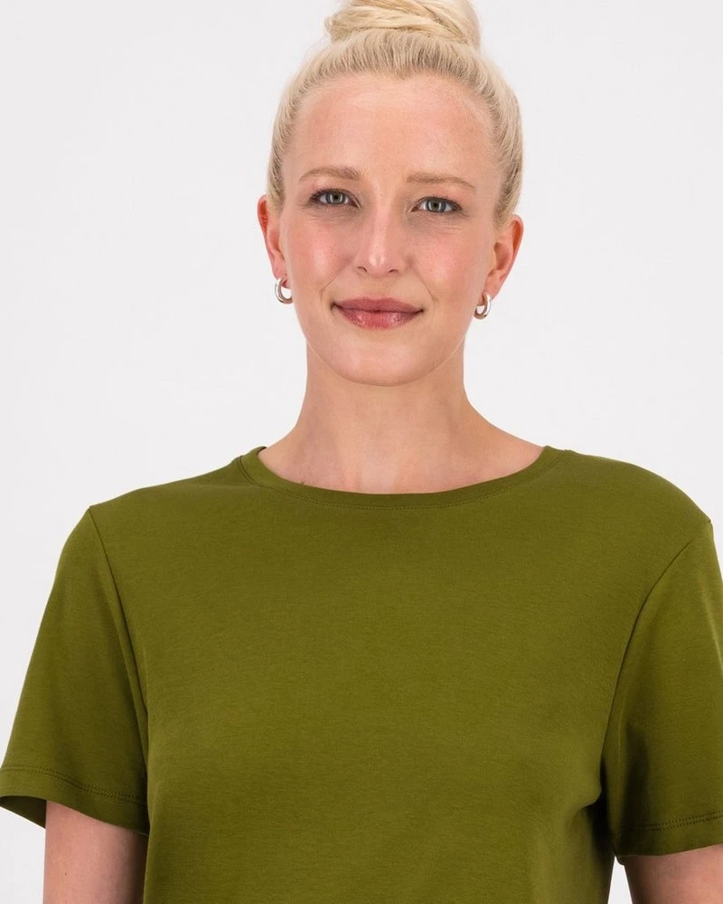 Add to your capsule wardrobe collection with another everyday essential, our Celine Basic T-Shirt. Locally made from a lightweight sustainably-sourced cotton, the basic tee features a regular fit with a flattering rounded neckline and short sleeves.