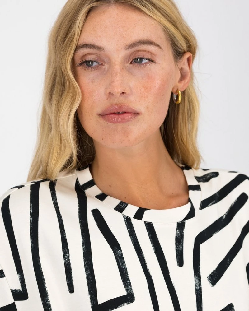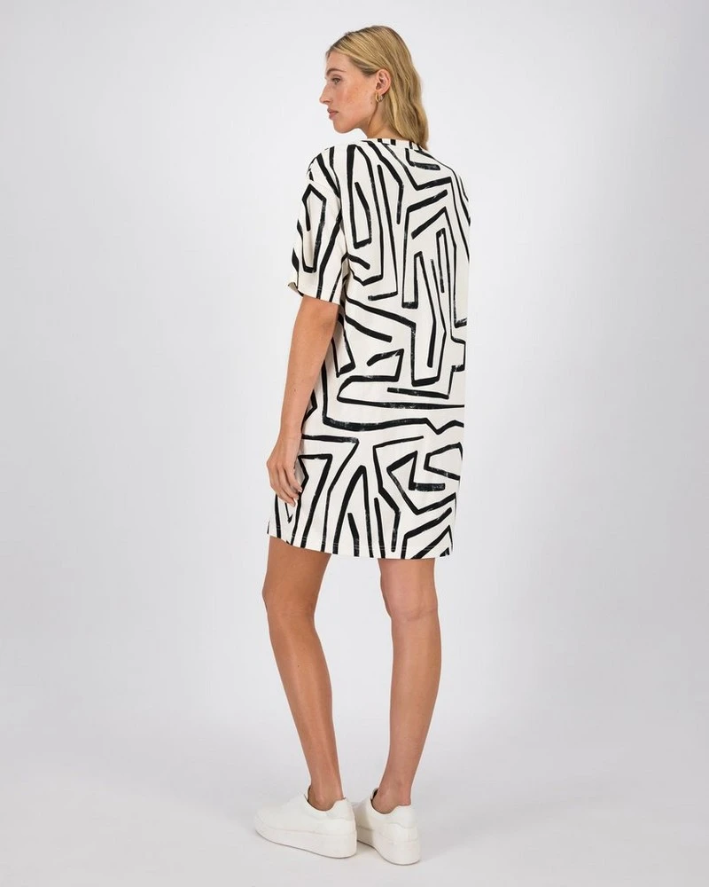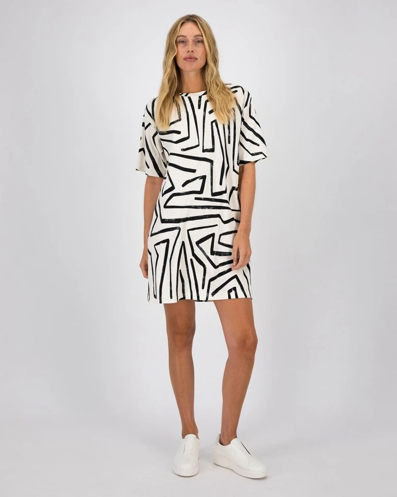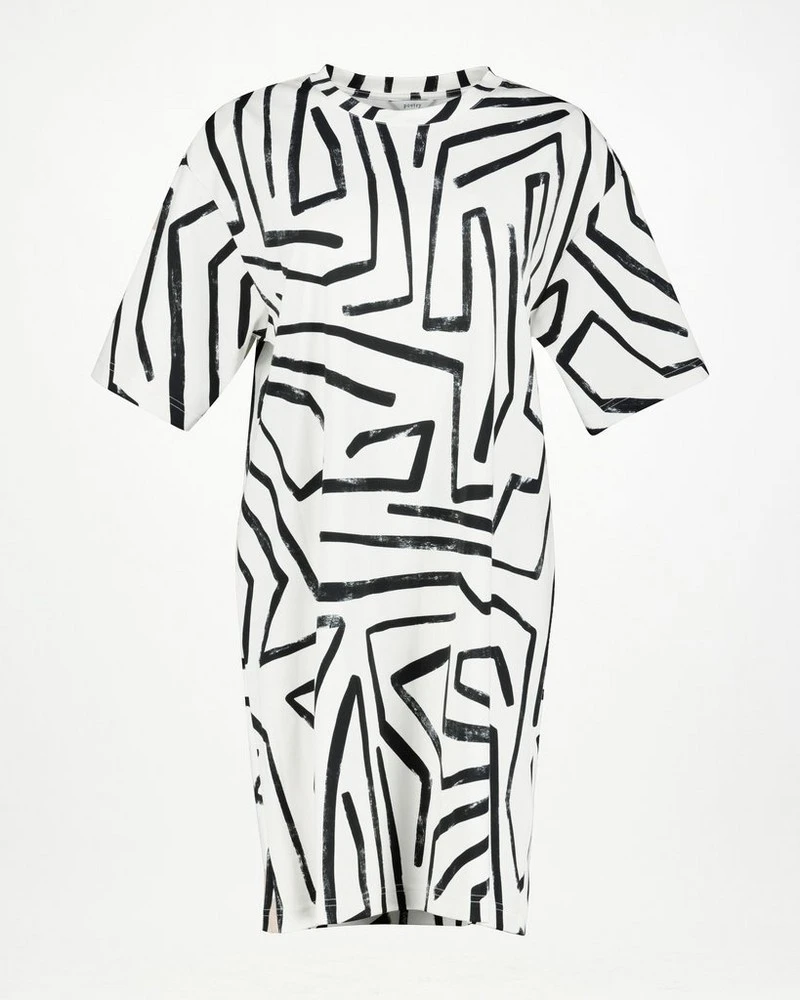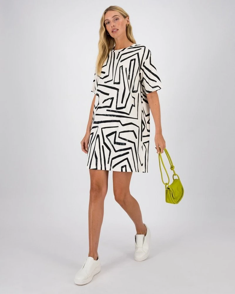 Prioritize style and comfort with the Christina Printed Mini T-Shirt Dress. Locally made from beautifully luxe mercerized cotton, the dress falls on the knee and features short sleeves and a rounded neck. Pair with your fave sneakers and a light jacket for a quick look.