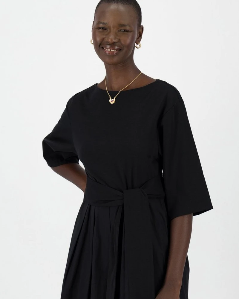 - Matching waist tie belt