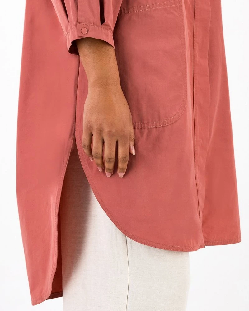 When all else fails, the Claudia Parka has your back. Made from cotton nylon, this parka is the perfect transitional piece to wear when the weather is unpredictable. The longer-length jacket features pockets, button closure and a hood while the three-quarter sleeve length adds character to the piece. Wear over a tee and jeans for a slightly elevated casual look.