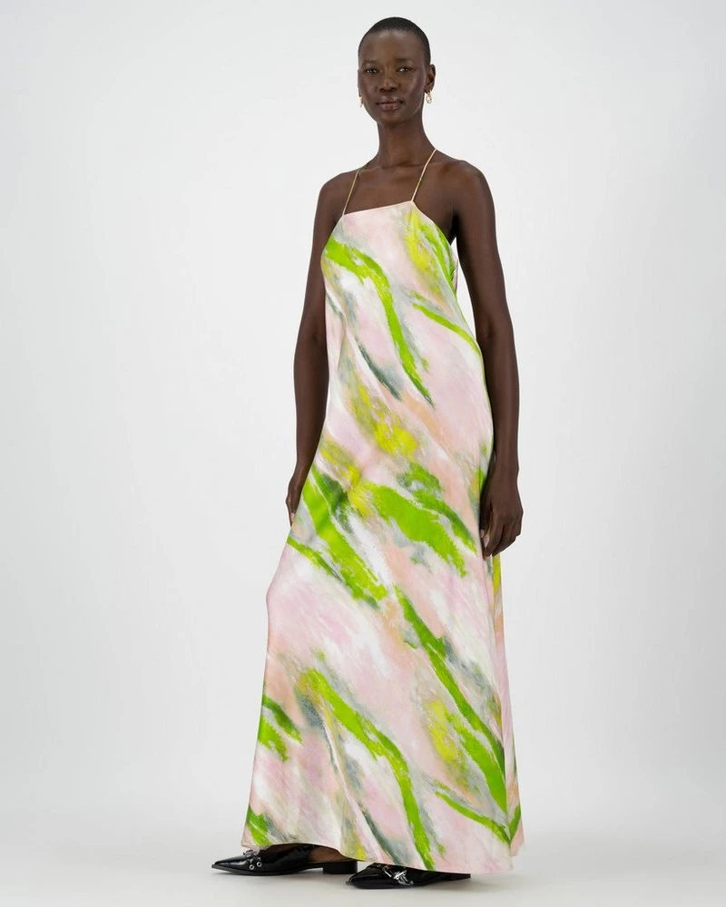 Make way for the Cora Printed Sateen Sheath Dress! The sheath style dress is flattering, while the bias cut fabric adds a beautiful drape to the piece. Made from a silky viscose fabric, it’s perfect to wear to a dressy event.Â