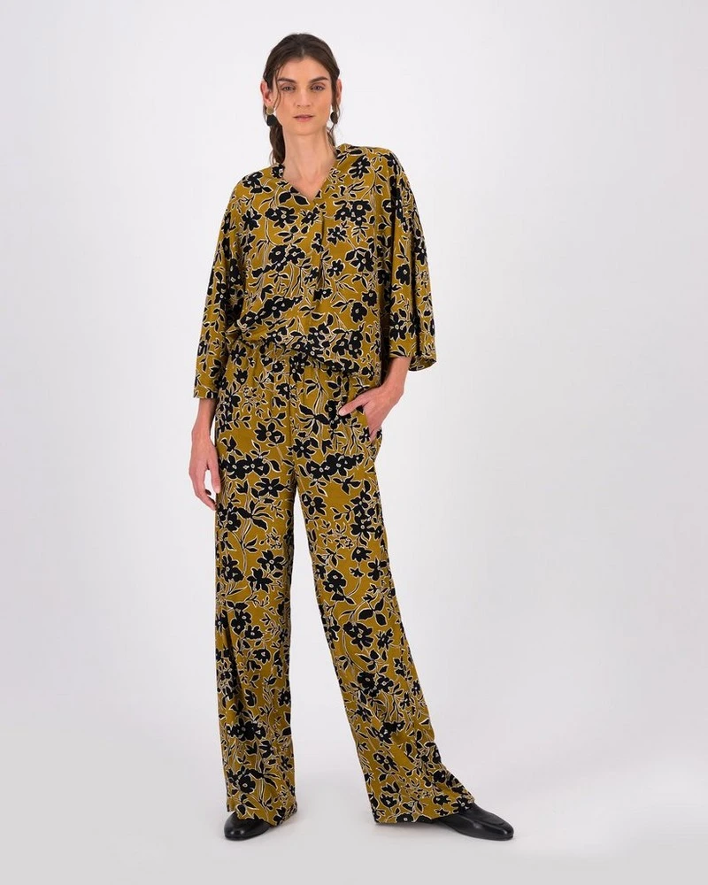 Make a statement in the Denisa Printed Pants. Locally made from a lightweight viscose material with a floral print, the relaxed fit features a high-rise waist and a full-length wide leg.