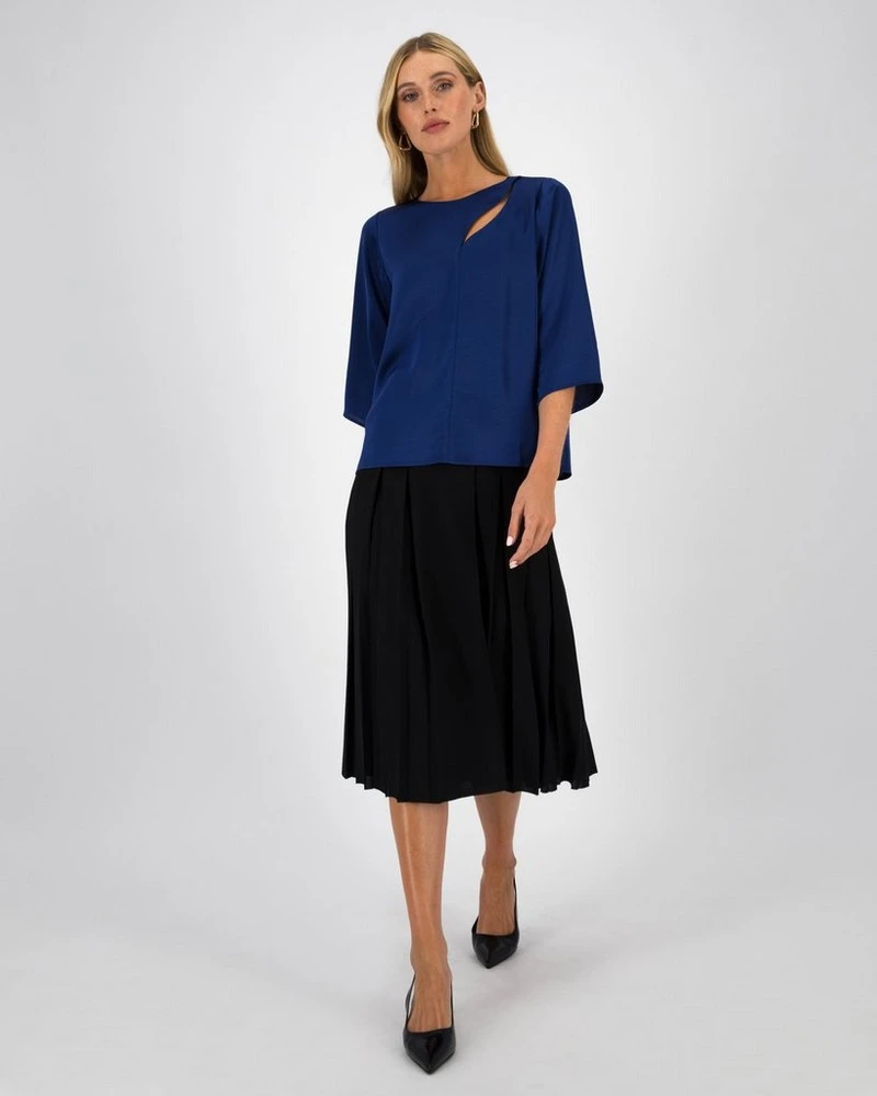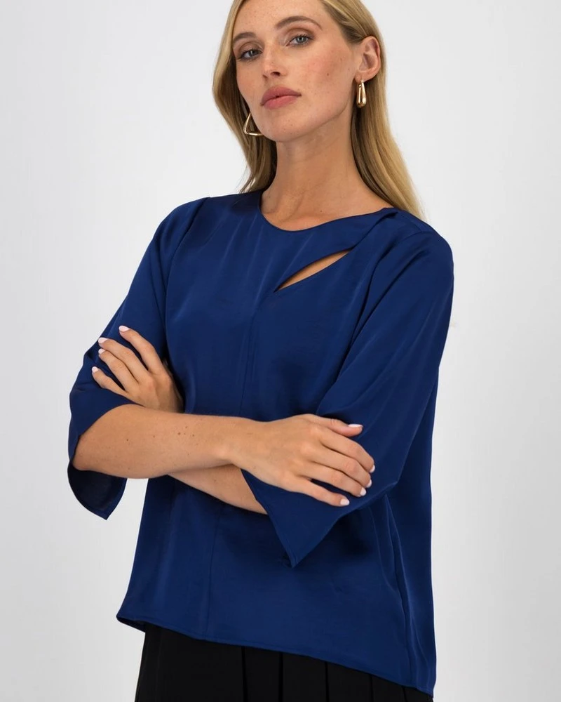 Dress up in style with the Ella Cut-Out Detail Blouse. Locally made, super soft, and comfortable to wear, this blouse is the perfect piece to wear to your next formal event. The slit along the top adds visual interest to the piece, and can be worn with skirts and pants alike.