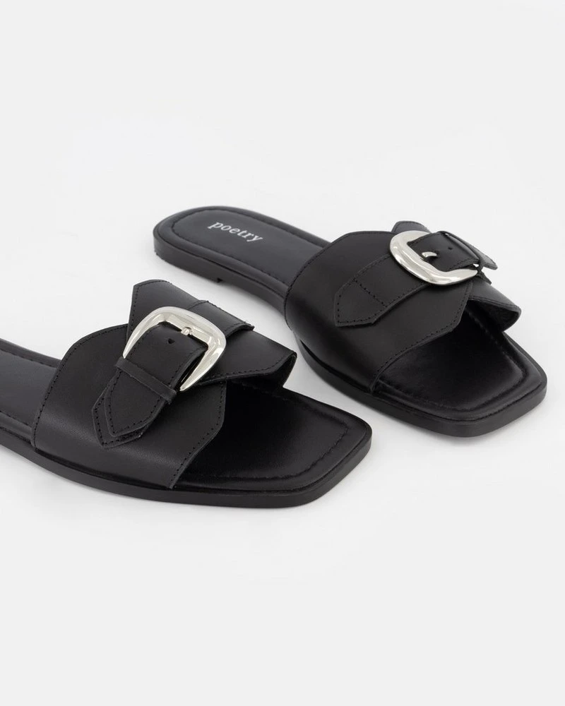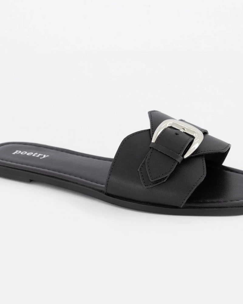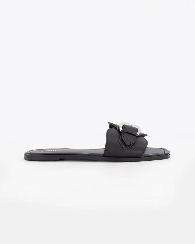 Step into stylish and versatile comfort with the Enya Leather Sandal. The classic slip-on design features a wide single strap with silver buckle detailing and a square toe. Pair with an easy-wearing everyday pair of denims or a maxi dress for a feminine fit.