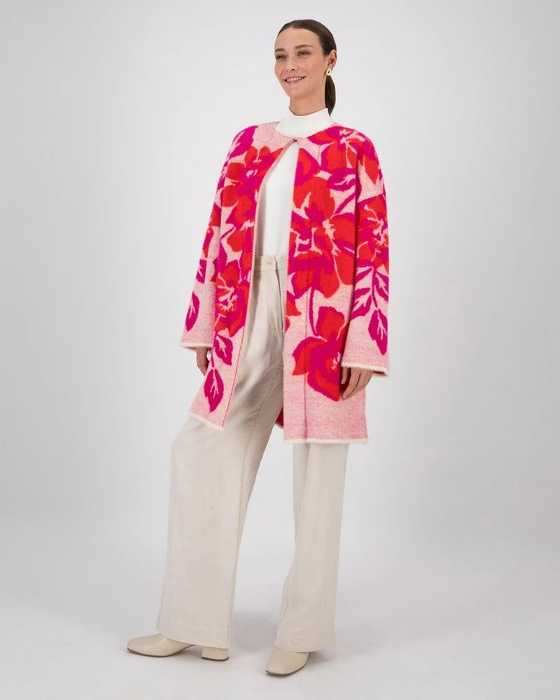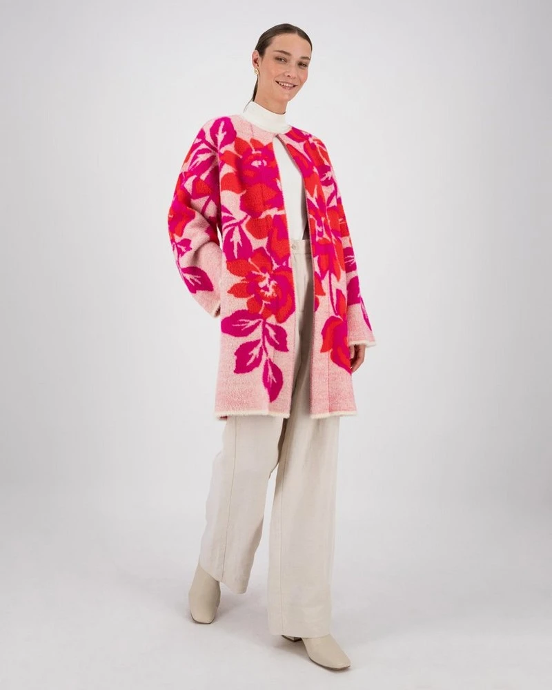 Bundle up in the Fallon Floral Kimono. Made from ultra-soft and fluffy cotton, this piece has a hook-and-eye closure at the top, wide sleeves and a vibrant floral design throughout.Â