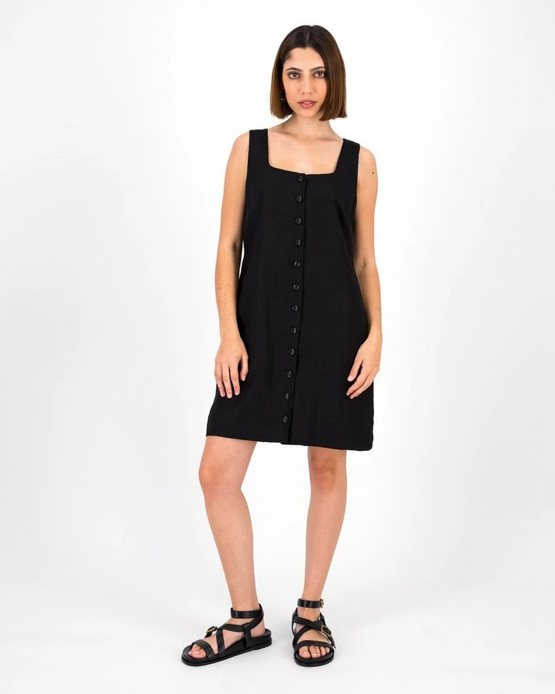 The Fia Linen Short Dress is such a versatile piece to add to your wardrobe. Locally made from linen, it features broad straps and a button-down front that lends itself to easy styling.