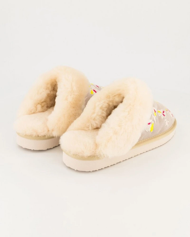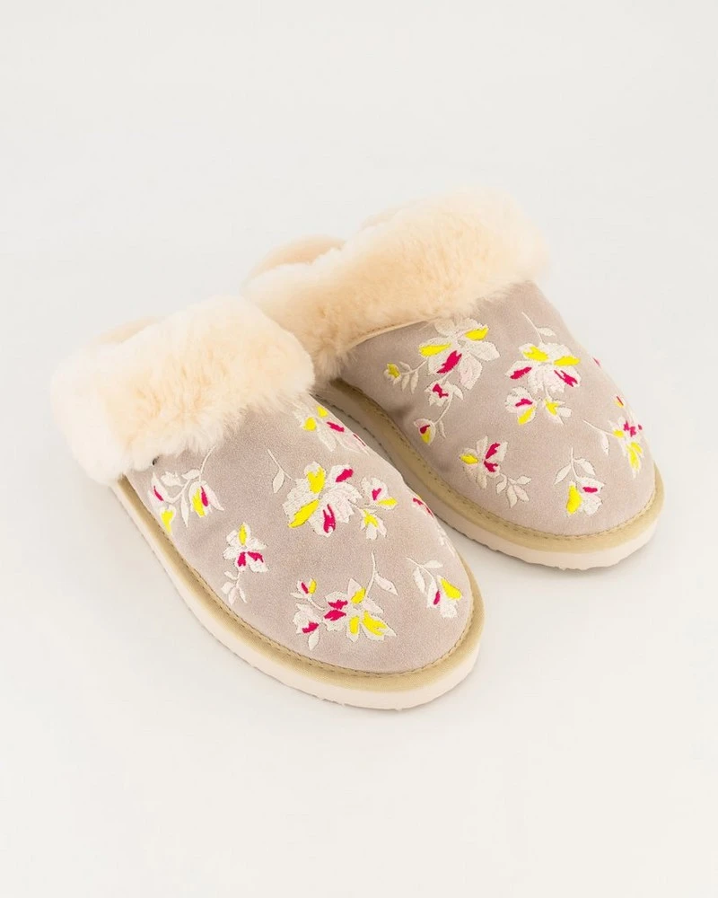 Keep your feet warm and cosy this winter with the stylish Gia Embroidered Slipper. With its classic slip-on design, these slippers feature fur along the upper as well as gorgeous, embroidered detail. These are perfect for lounging about at home.