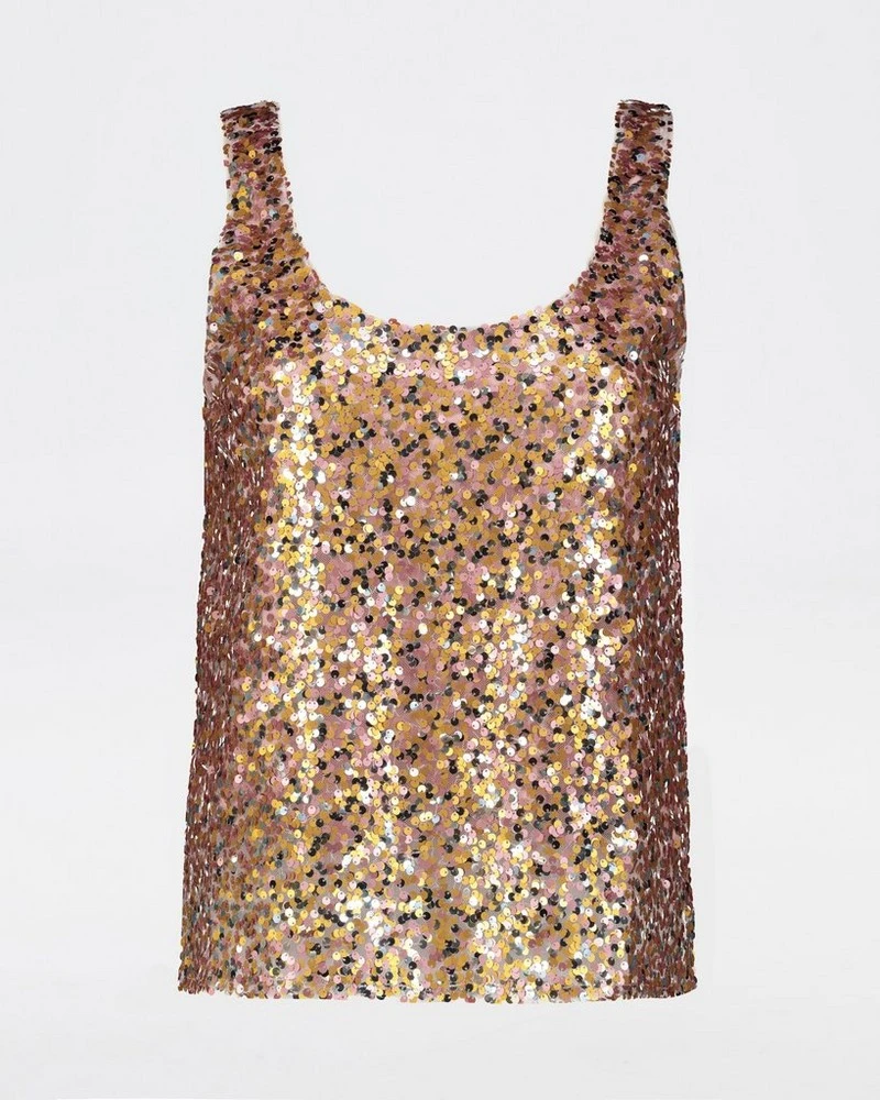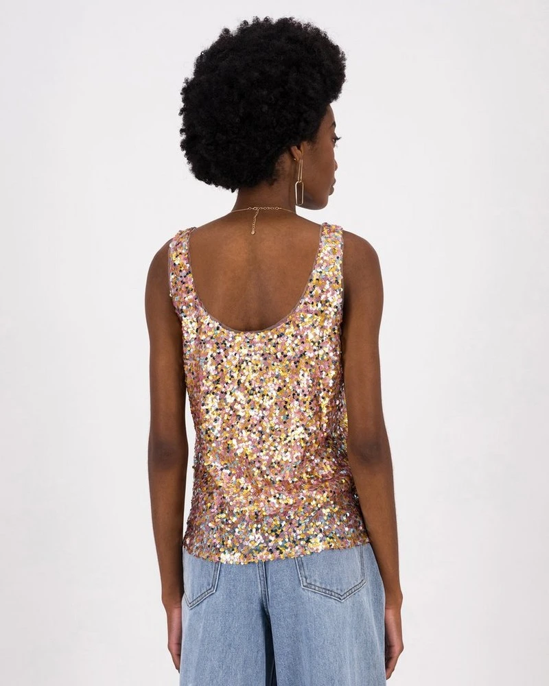 Elevate any look with the easy-wearing yet bold Harri Sequins Cami. Made from polyester with two-tone statement sequins throughout, it features a flattering scoop neckline and sleeveless design, with a mesh inset.