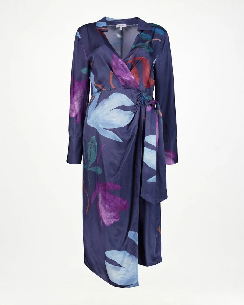 Make a statement in the Heloise Wrap Dress. Made from a luxe and flowy viscose, the dress features a v-neckline and matching waist-tie belt that cinches at the slimmest part of the waist, giving you that ultra-slimming effect. It hugs your curves in all the right places and naturally shapes your body, with a pop of bold floral print.