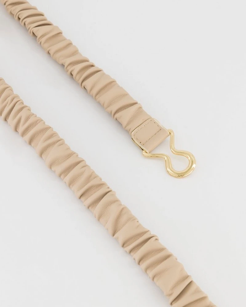 Complete your look with the Iggy Skinny Ruched Belt. It features a clasp-like buckle and ruched detail all over for a chic flair.