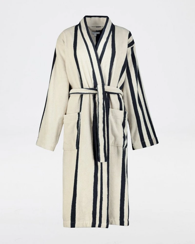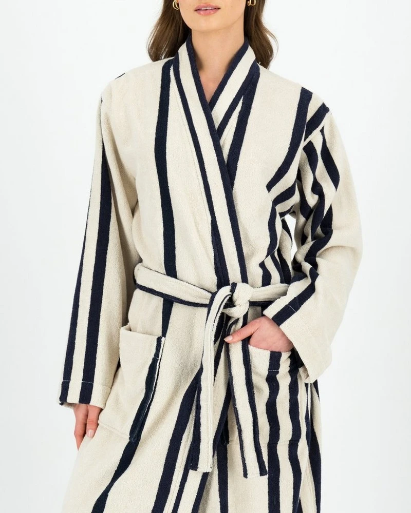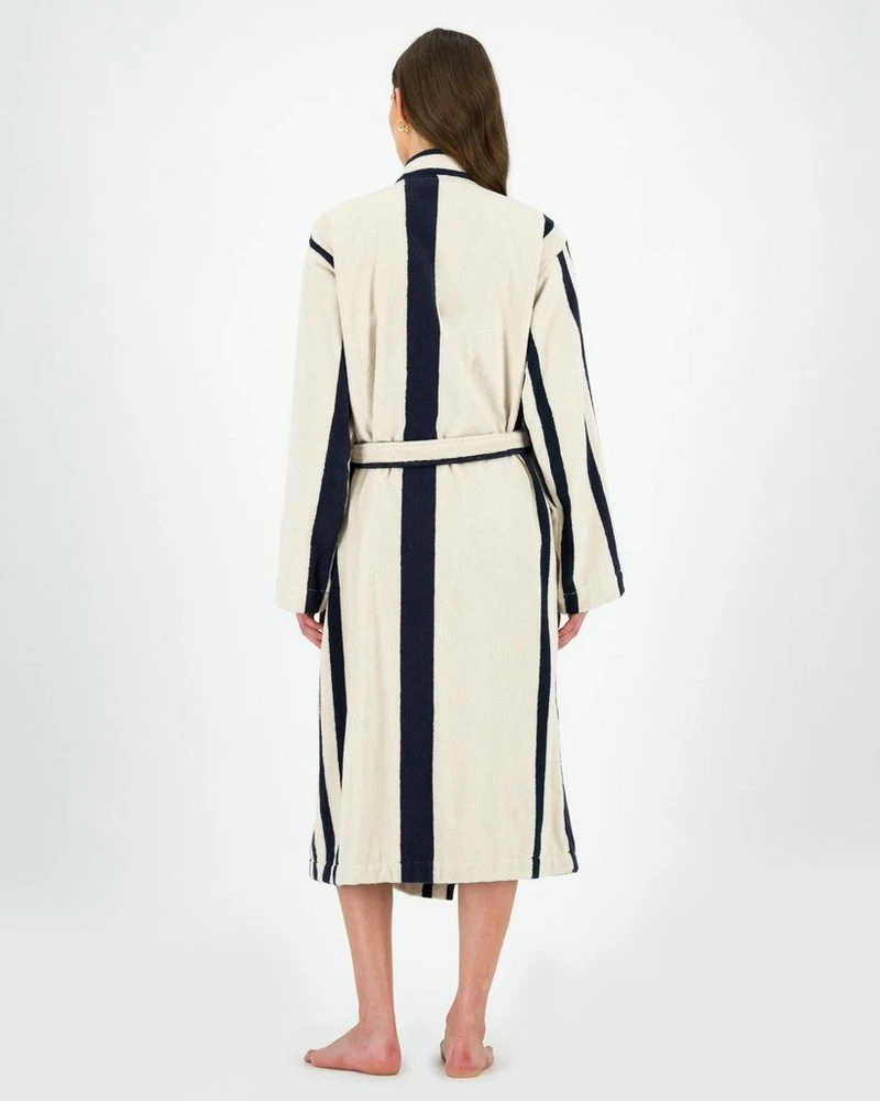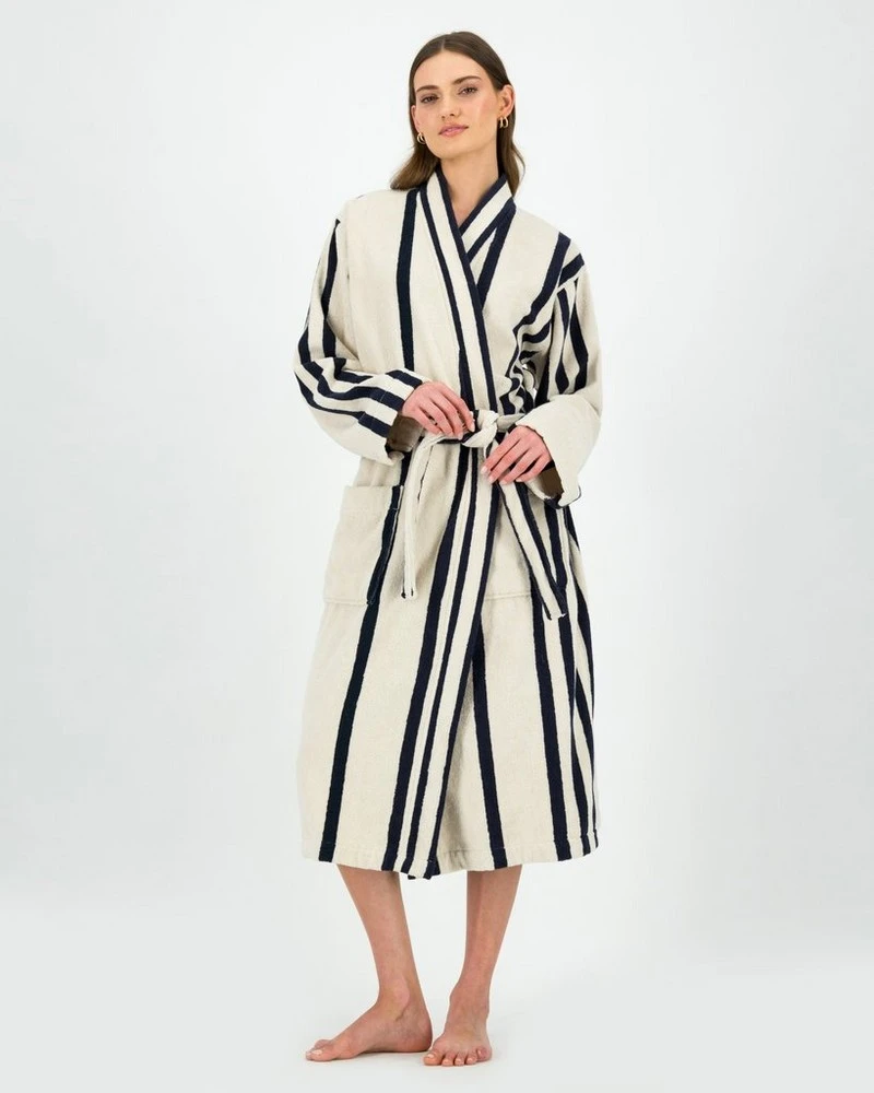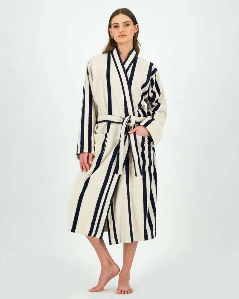Feel like royalty in the Ivy Stripe Gown. Made from 100% cotton towelling, it features a traditional wrap design, long sleeves, two front pockets and a matching tie-belt at the waist.