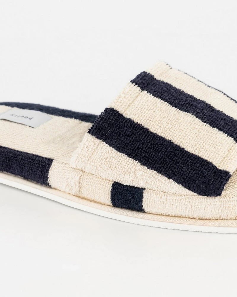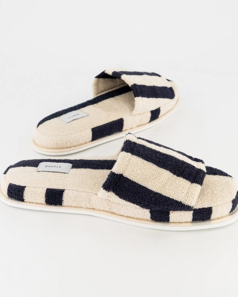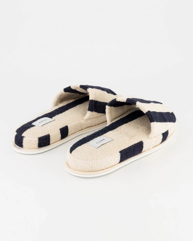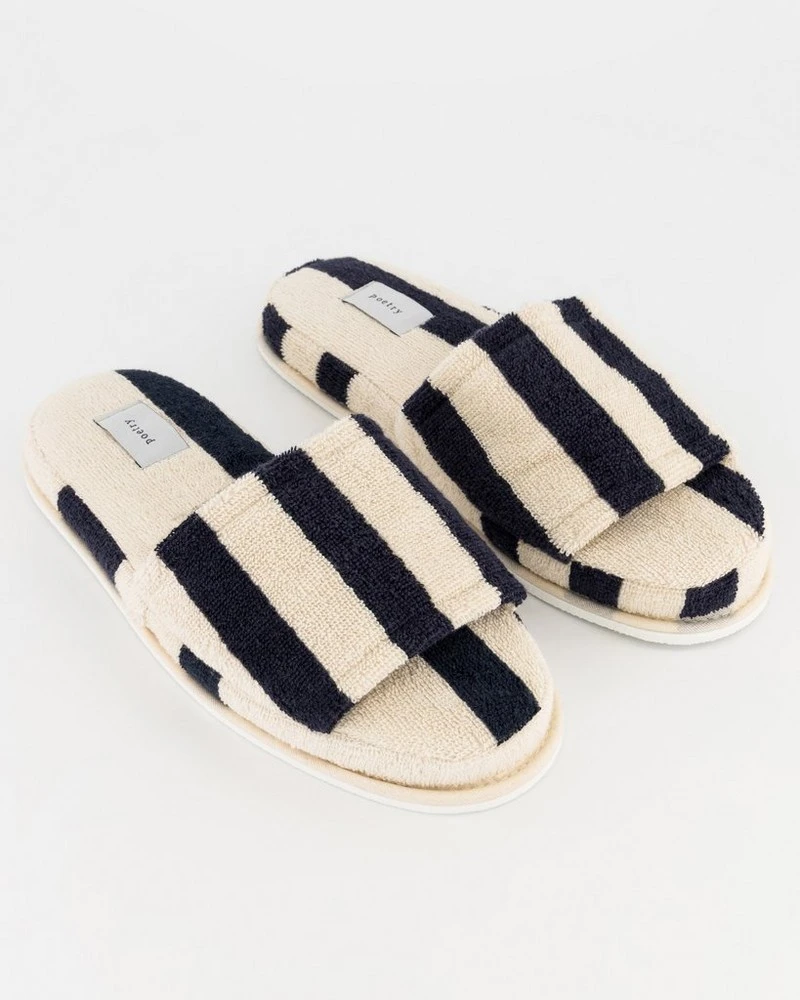 The Ivy Striped Toweling Slipper is the epitome of style. Perfect to wear during your evening self-care routine, the slipper is sure to add a further element of relaxation this summer.Â