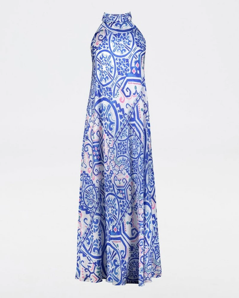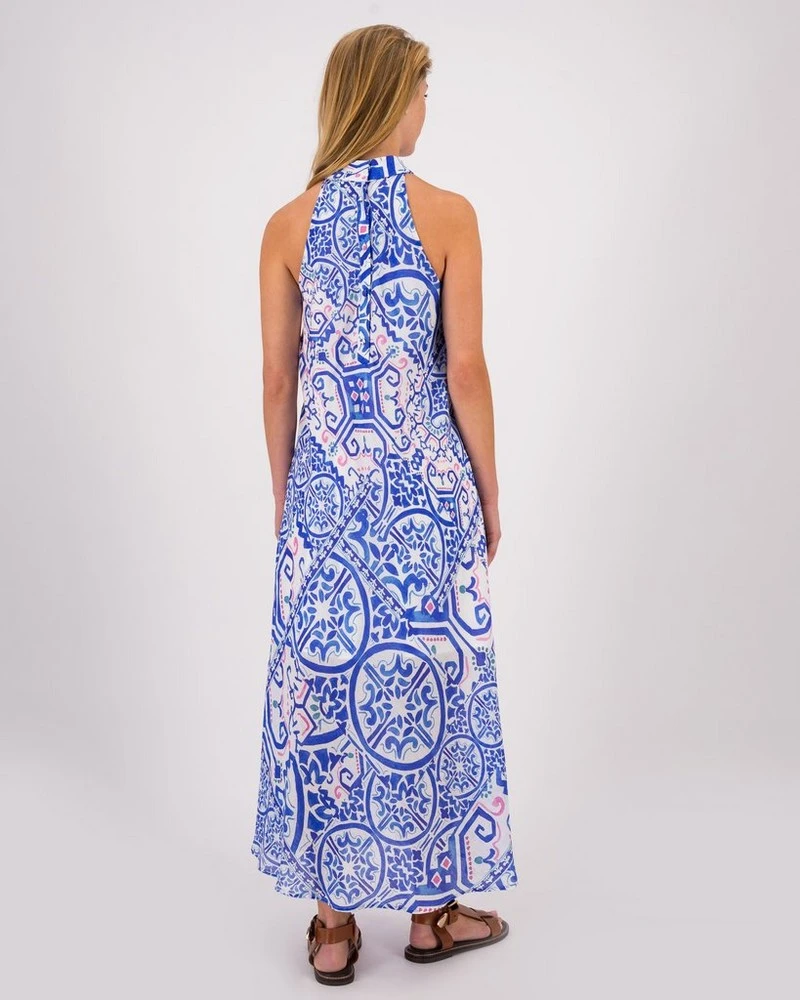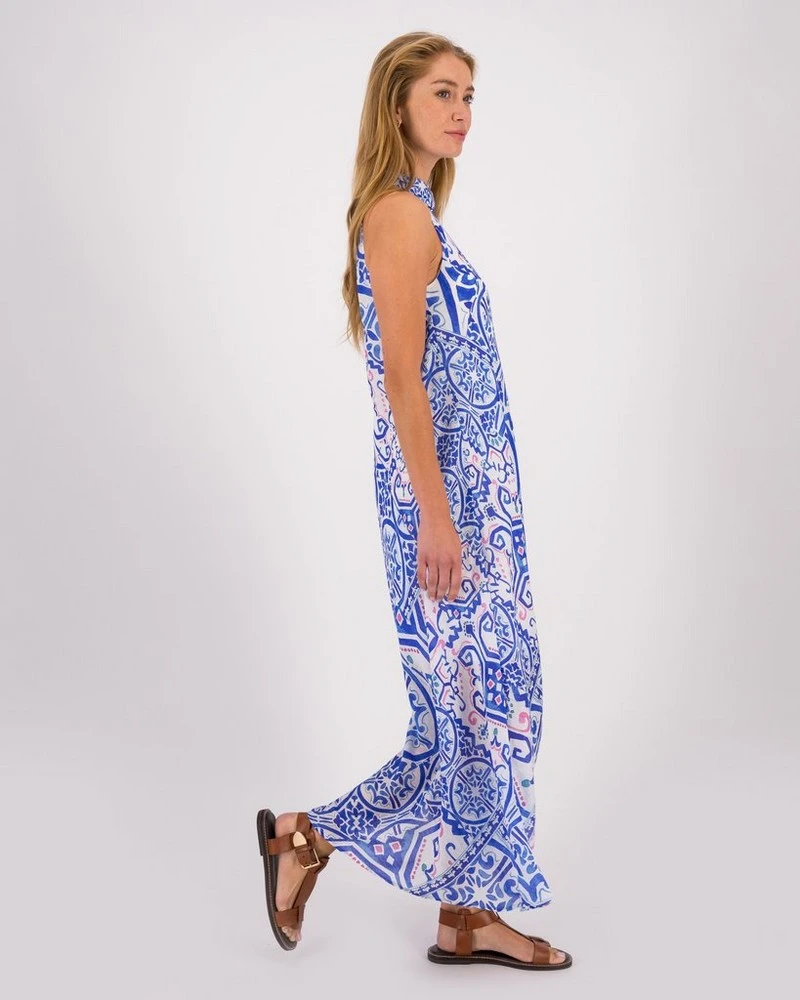 Live your Mediterranean dreams with the Julia Maxi Printed Dress. This locally manufactured dress is made with an ultra-breathable viscose blend, that’ll keep you cool and the stunning print throughout makes a statement that’ll turn heads wherever you go. Pair with a strappy sandal heel, chic updo and statement earrings for an elegant occasion.