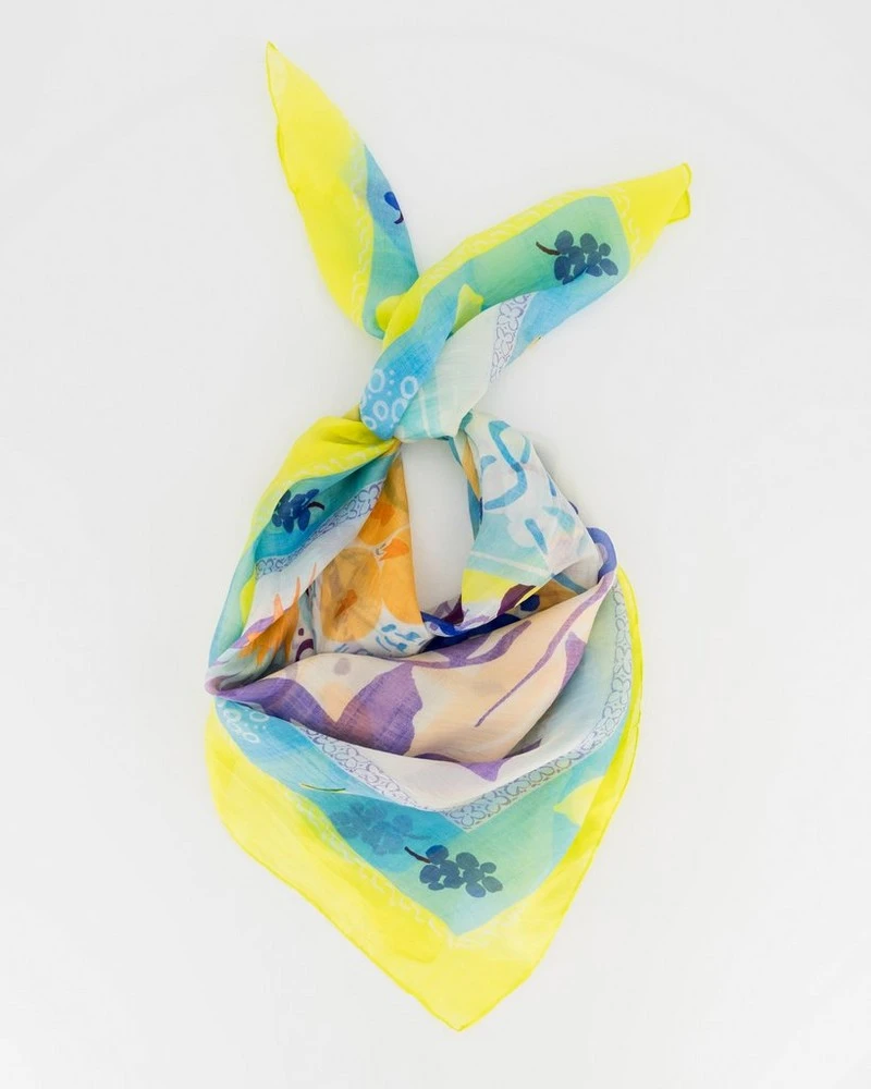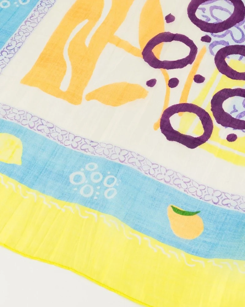 The Jullian Silk Scarf boasts unique designs in bold colours that come together to create a beautifully dimensional scarf.Â