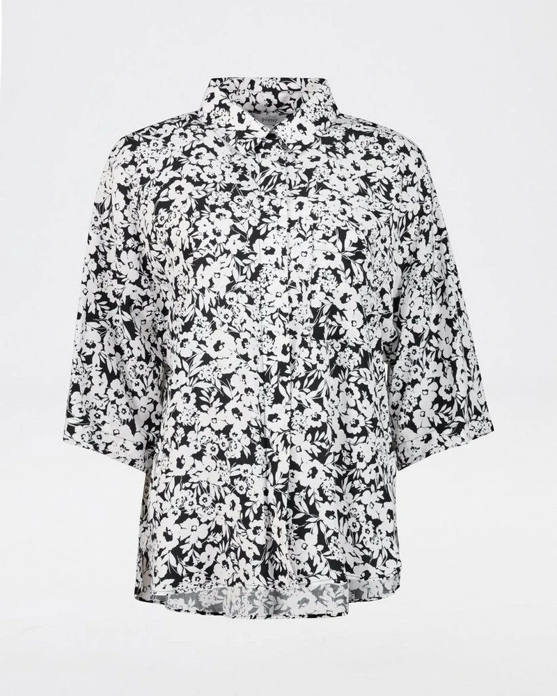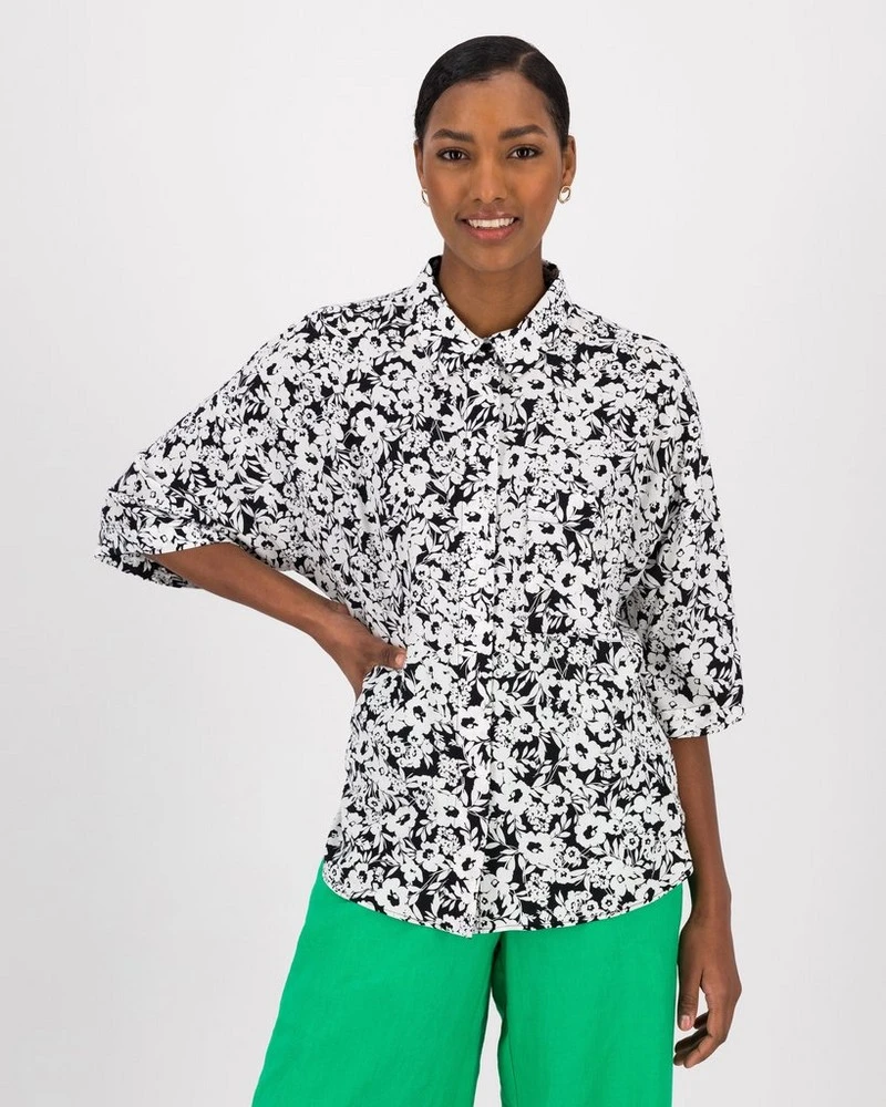 Make a statement this season in the Katalin Floral Blouse. Locally made from a lightweight yet luxe viscose material, the structured top features a regular fit with a classic collared neckline, three-quarter drop-shoulder sleeves and a gorgeous black and white floral print.