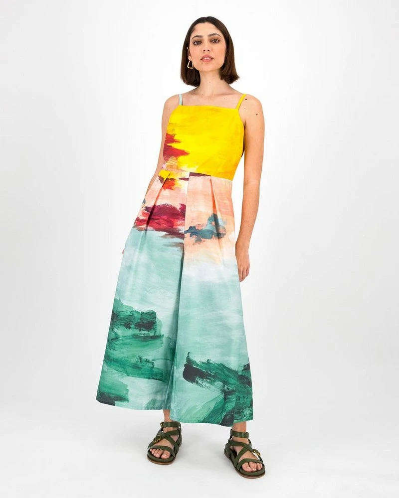 Bold, vibrant colours are brought to life in the Katelynn Printed Jumpsuit. The cotton fabric is cool on the skin, while the detailed design demands attention. Dress it up with stylish heels, or make it casual with your favourite pair of sneakers.