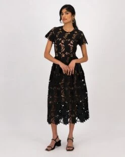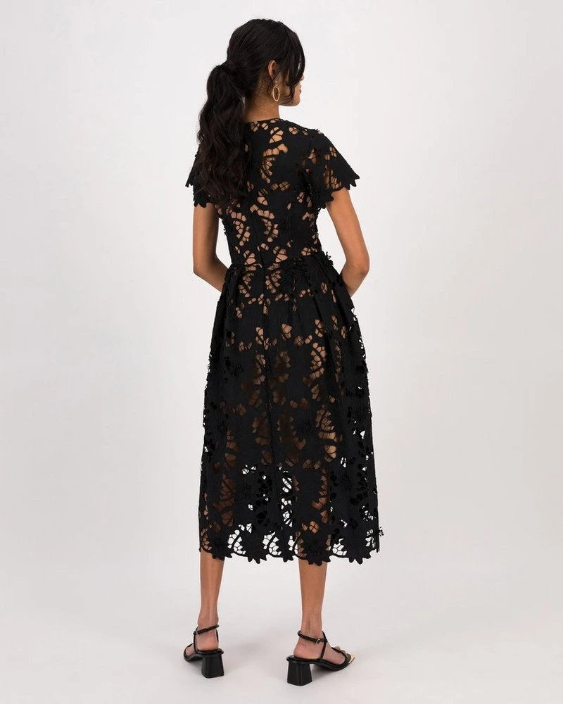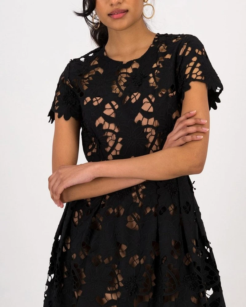 The Katrina Lace Dress brings effortless elegance to your wardrobe and is a perfect addition to have on hand for any summer events. Made with sustainable cotton, and featuring a classic crew neck, she’s easy to style and comfortable to wear. The classic fit and flare silhouette, midi length and cap sleeves is sure to turn heads wherever you go!