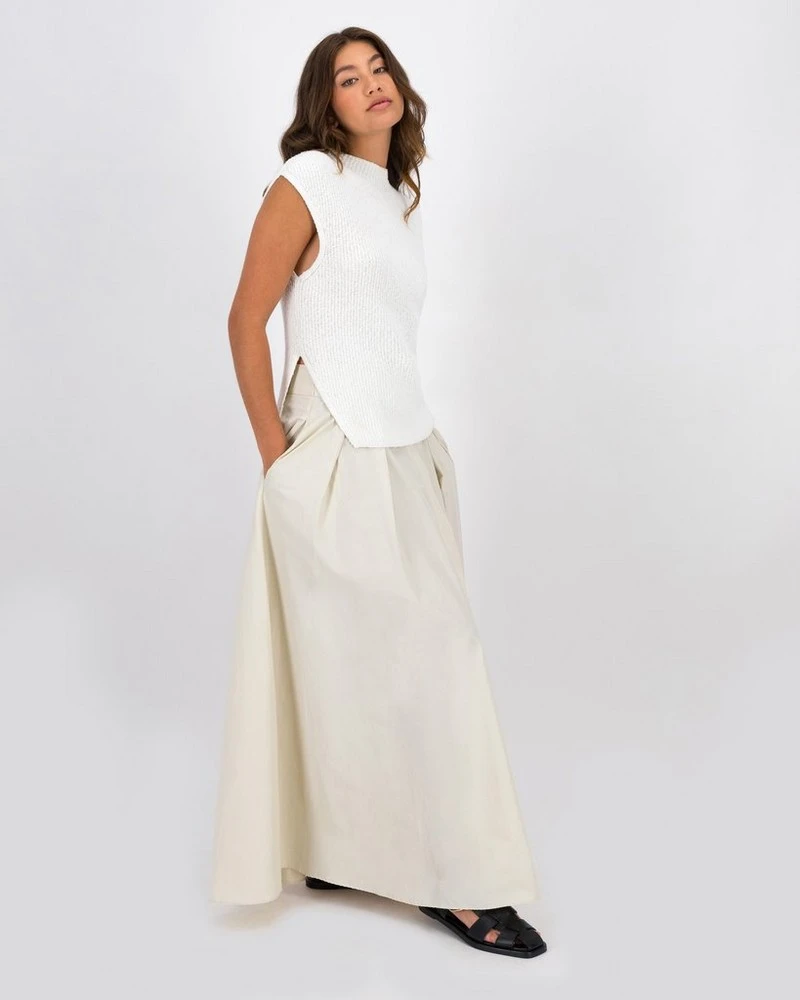 It’s the season for layers, and the Kent Sleeveless Knitwear Vest is here to stay. The super soft cotton fabric is comfortable and lends a beautiful drape to the piece. Wear on cooler days as a single layer, or pop over a long sleeve top to keep the chill at bay.Â