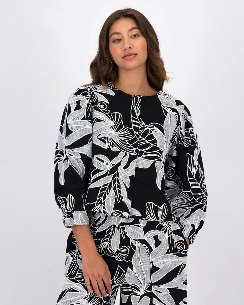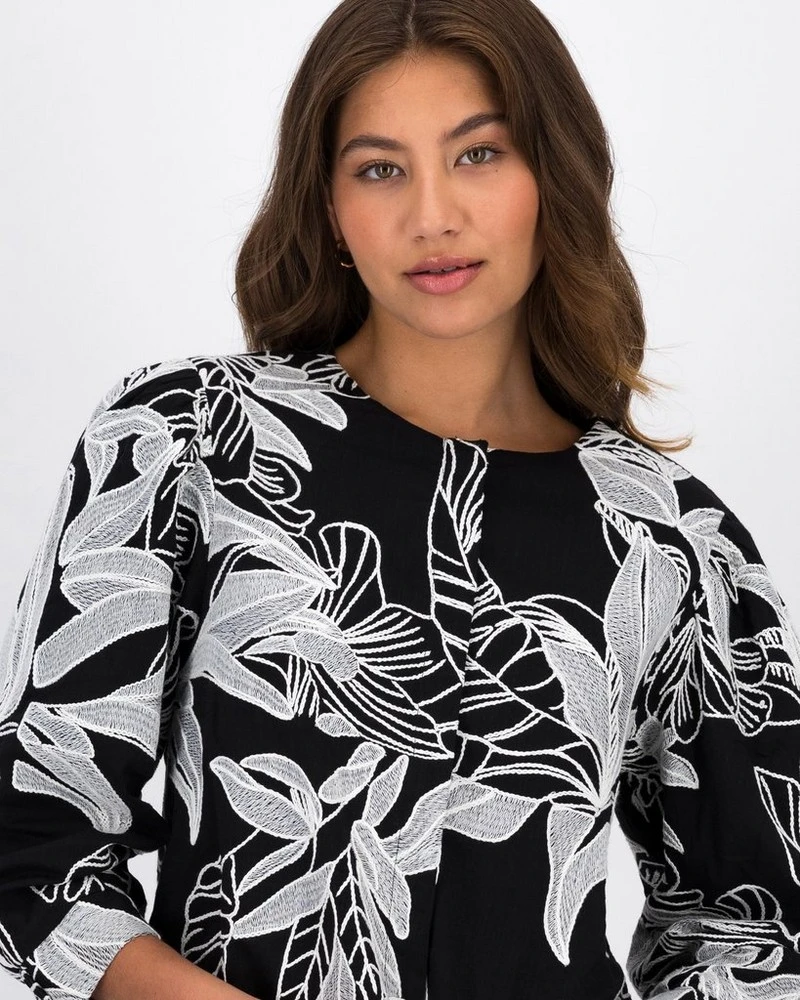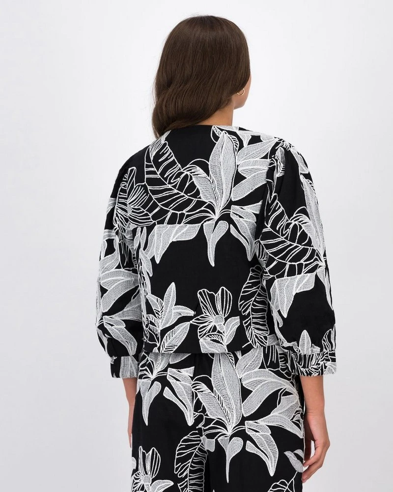 Add a touch of freshness to your wardrobe with the Khemeka Embroidered Jacket. The cotton blend base is elevated with white tropical embroidery that creates strong visual appeal. Pair with the matching Khemeka Embroidered Pant for a unique suit or mix and match with other staples in your wardrobe.Â