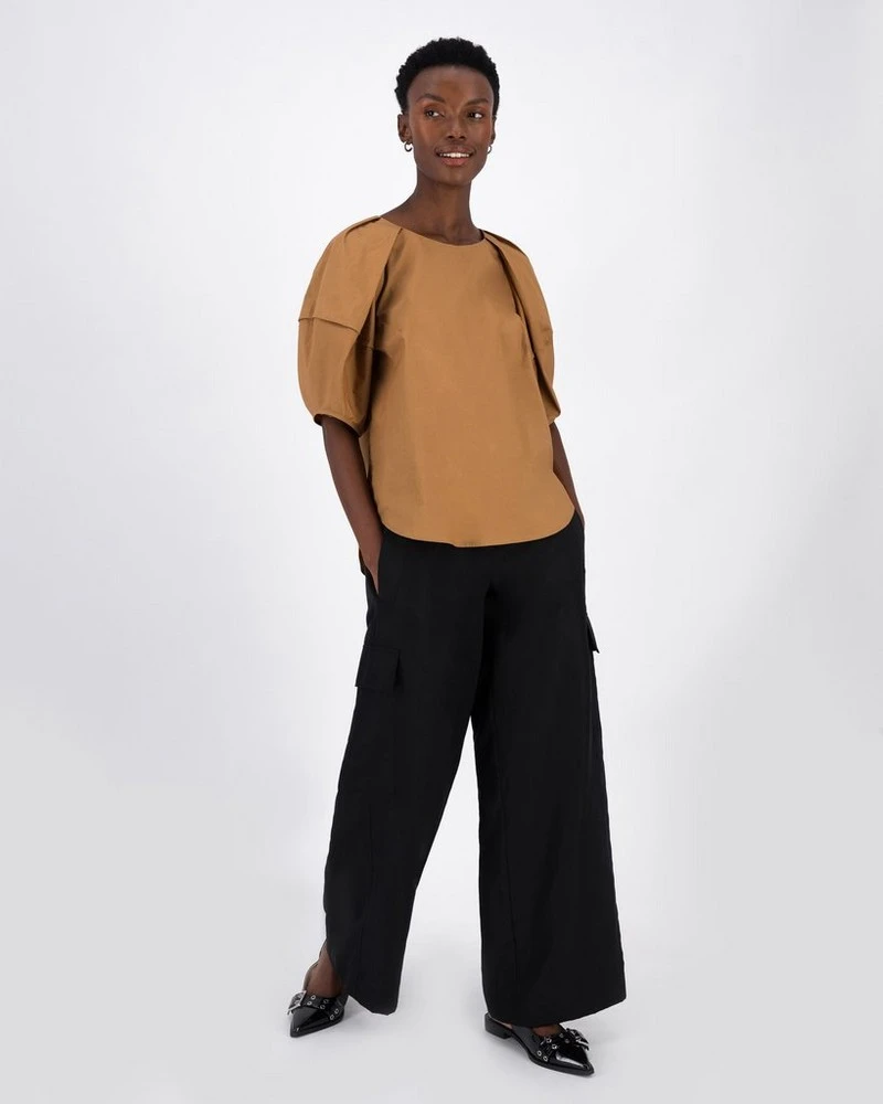 The Kiano Popover brings a fresh take on a wardrobe essential. Locally manufactured, the cotton poplin blouse features a drop-shoulder and pleat detail on the sleeve that creates visual interest. Pair with fitted bottoms for a breathable look that’ll keep you comfortable all day.Â