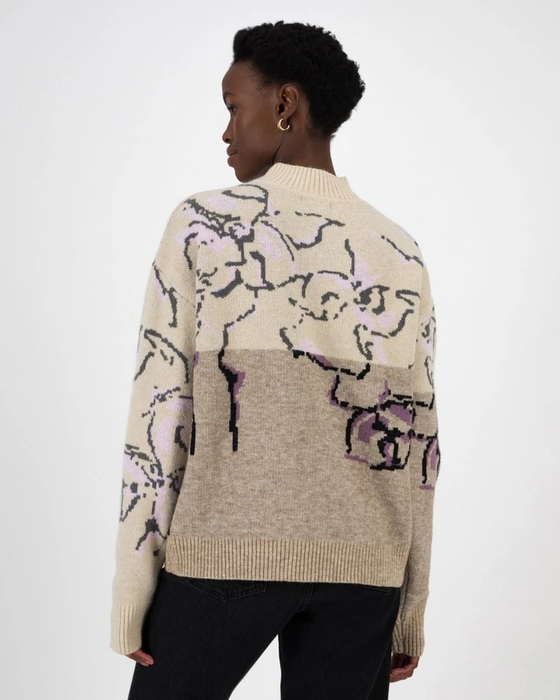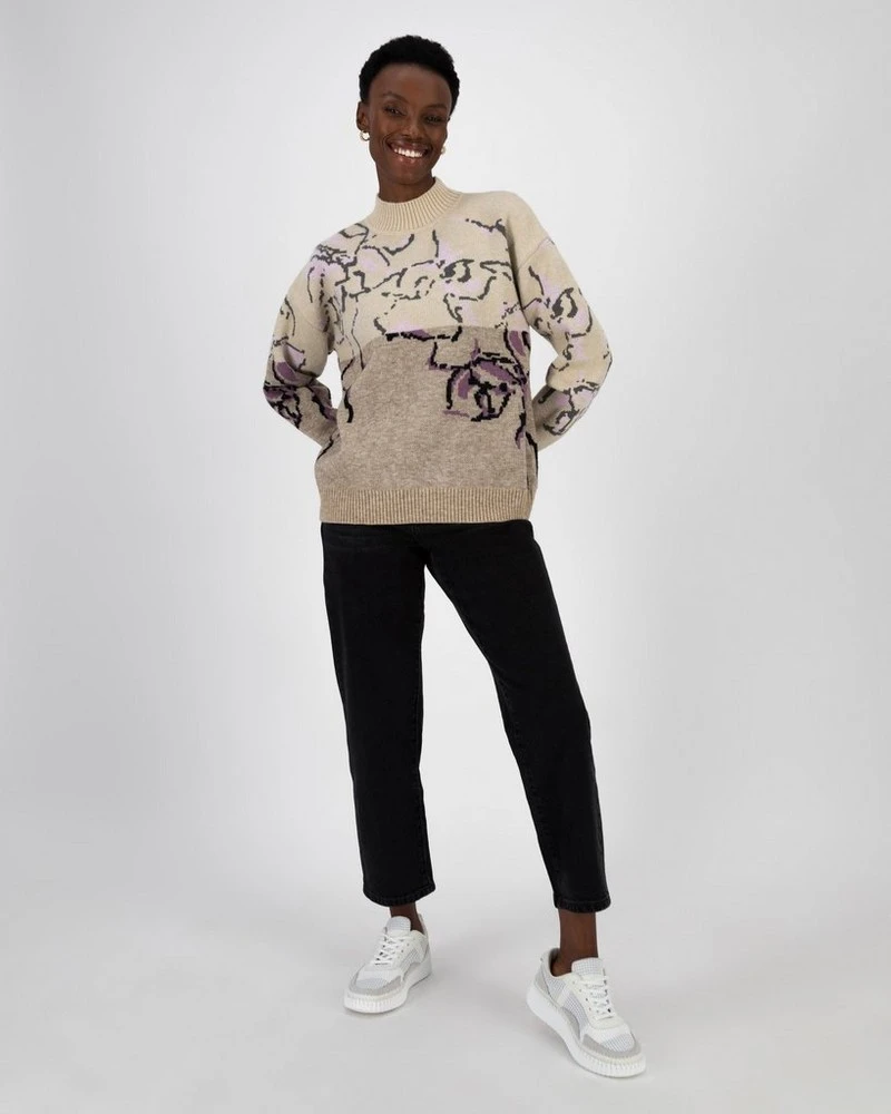 It’s the season of cozy! The Lexia Intarsia Floral Jumper is a truly unique piece with the two-tone colourway, that’s elevated with the addition of an intricate intarsia floral design across the chest. Pair with a maxi skirt and boots for a chic and warm winter look.Â