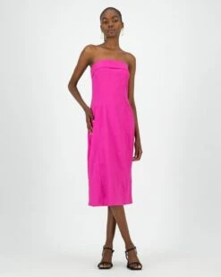 The elegant Liliana Long Linen Dress is a chic choice for the season’s special events. Made locally from linen, this piece has a classic silhouette and pairs beautifully with strappy heels and drop earrings.Â