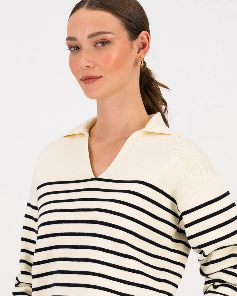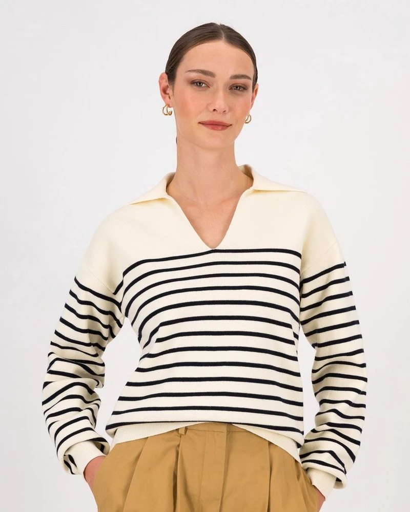 The Lillian Stripe Jumper is easy-wearing and lightweight – perfect for those chillier summer evenings.