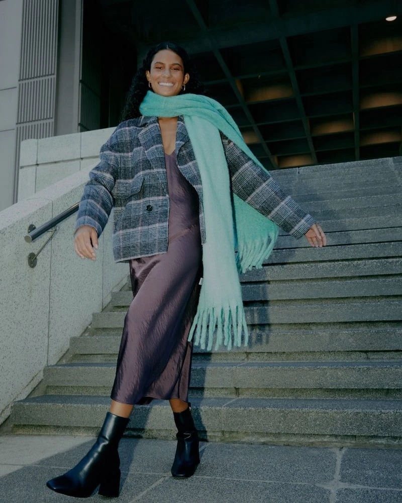 Model is 174cm tall and wears a size 10.