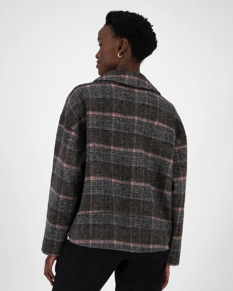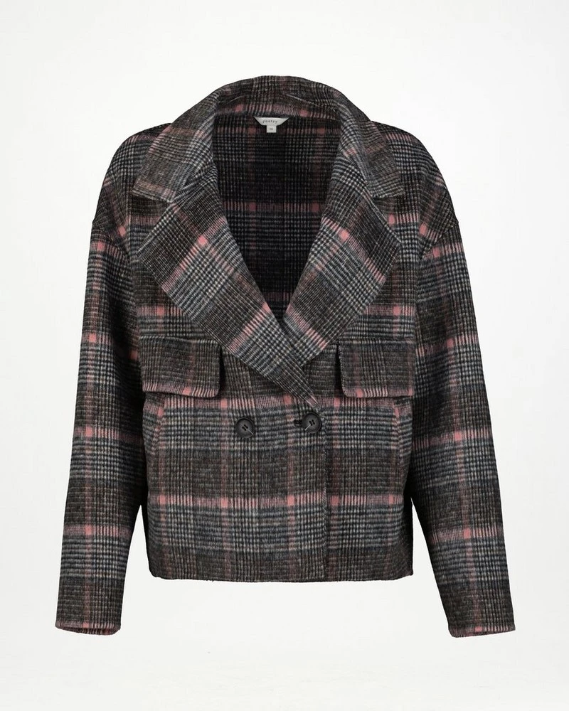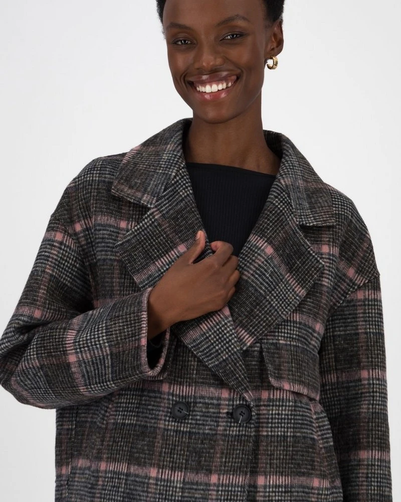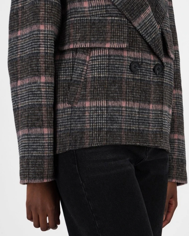 Stay warm on cooler days with the Lina Check Peacoat. Expertly tailored, the piece is double breasted and features notched lapels for a chic, crisp garment that can be worn in many ways.Â