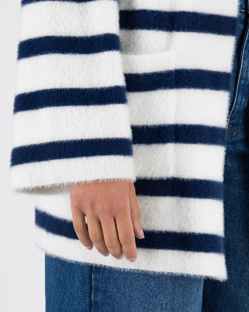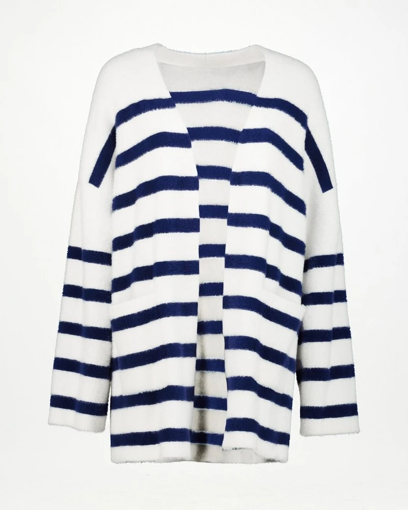 Stay warm and cosy in the Lola Striped Kimono. It’s an effortless piece with bold stripes and handy pockets to keep your essentials close by. Made from a wool blend, its ultra warm and works exceptionally as a layering piece.Â