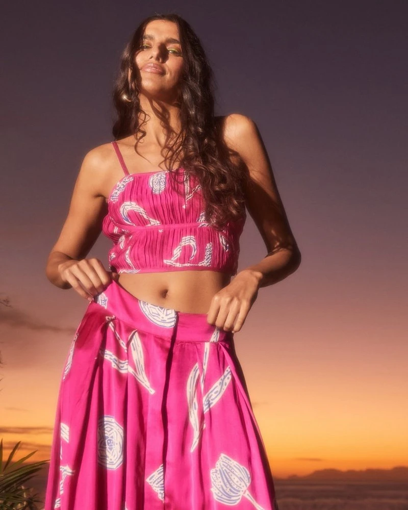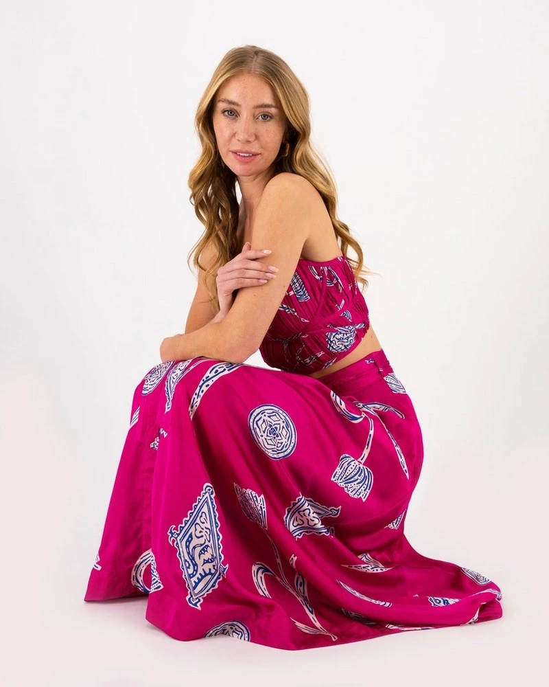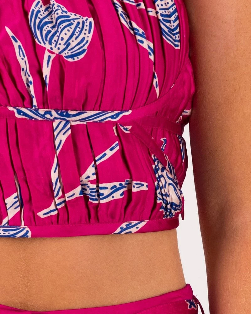 The stylish Marysol Crop Top is a beautiful addition to your wardrobe. Made from linen and featuring an elegant design throughout, this vibrant piece is a simple way to add personality to your look. Best paired with the matching Marysol Skirt for a cute co-ord moment, the top can also be worn with a simple denim or maxi skirt.Â
