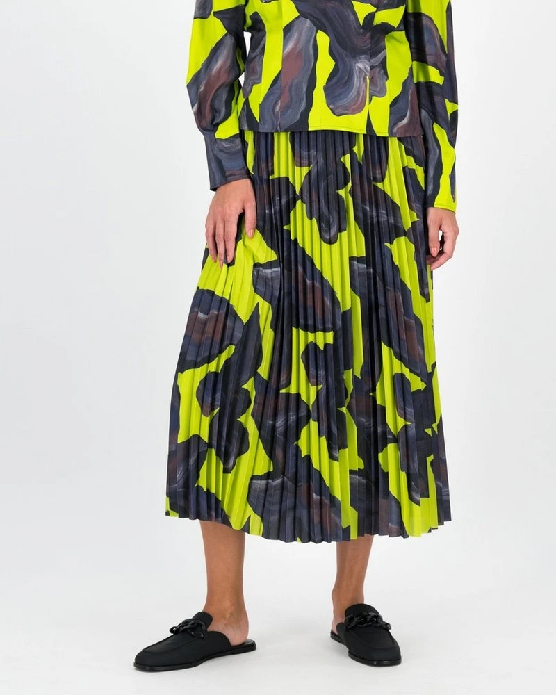 The Masego Pleated Skirt lends feminine charm to any look. With a classic A-Line silhouette, the pleats add stunning movement and texture to the piece. Pair with a tucked-in top and boots for a chic outfit.