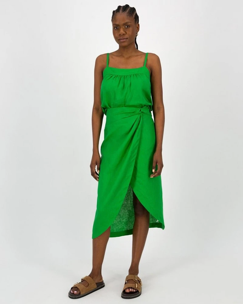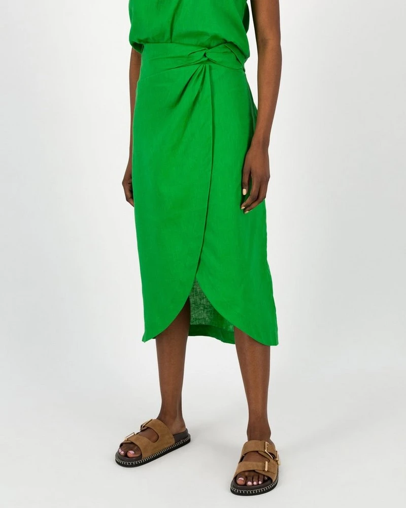 Elegant and perfect for any occasion, the Mia Wrap Skirt is a wardrobe staple for the Poetry woman. Made from cool linen, it features a knot detail along the waist for a flattering fit.