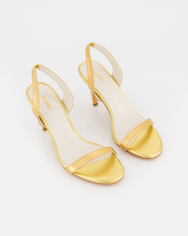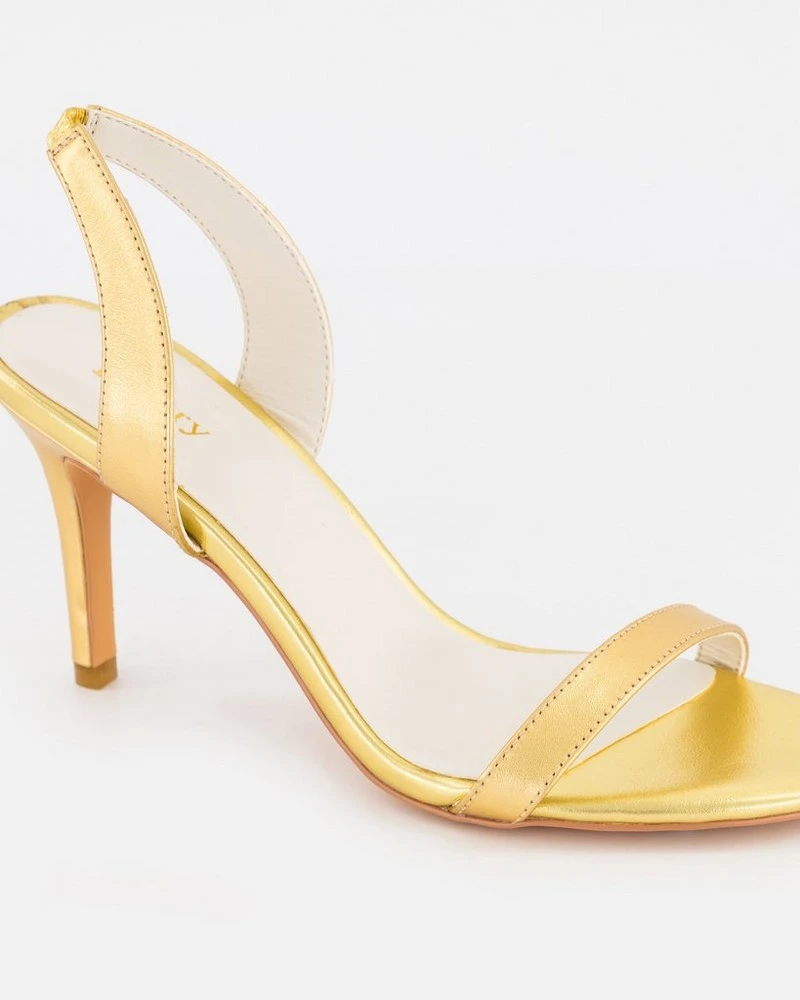 Step into glamourous and timeless footwear with the Michaela Heel Sandal. These high heels feature a simple and sleek metallic design with a strap at the ankle. These beauties are perfect for a night out and is best paired with a little black dress.